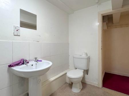 The retail unit is currently leased at £500 pcm, and offers excellent shop frontage directly onto the High Street, with large display windows and ample internal space for retail use. To the rear of the ground floor is a sales counter and access to a passageway leading to the basement, which is currently used as a fitting room. Timber stairs lead down to a spacious basement area, comprising a kitchenette/workshop space, rear enclosed porch, and an understairs storage cupboard. Beyond this is a front-facing storage room, ideal for stock or equipment. Also on the basement level is a shower room, fitted with a shower cubicle, low flush WC, and pedestal wash basin. When the property was purchased, the basement formed a self-contained apartment, complete with independent access and facilities. While it is currently integrated into the retail space, the original services remain, and with the necessary consents, it could easily be reinstated as a separate residential unit — ideal for rental income, staff accommodation, or mixed-use potential.