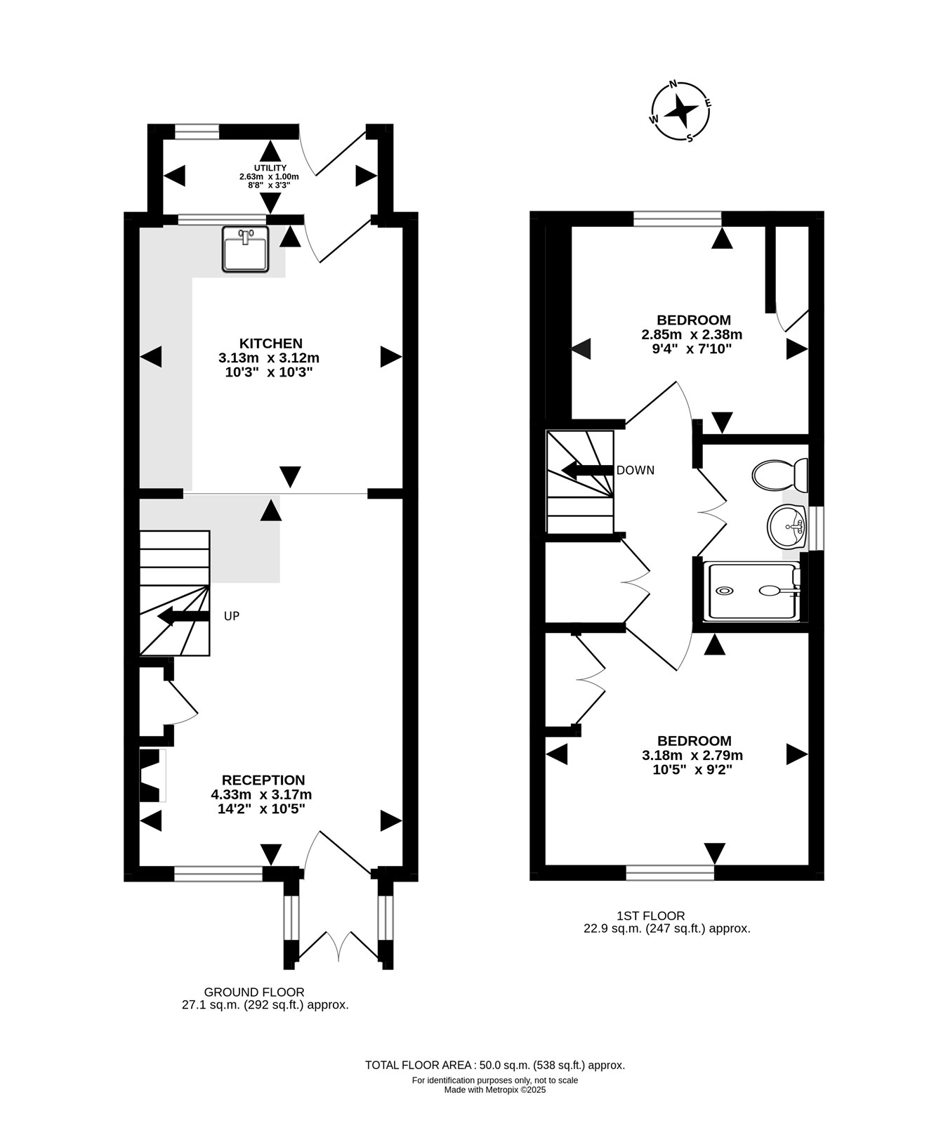 - Two first-floor bedrooms, with one enjoying lovely elevated countryside views