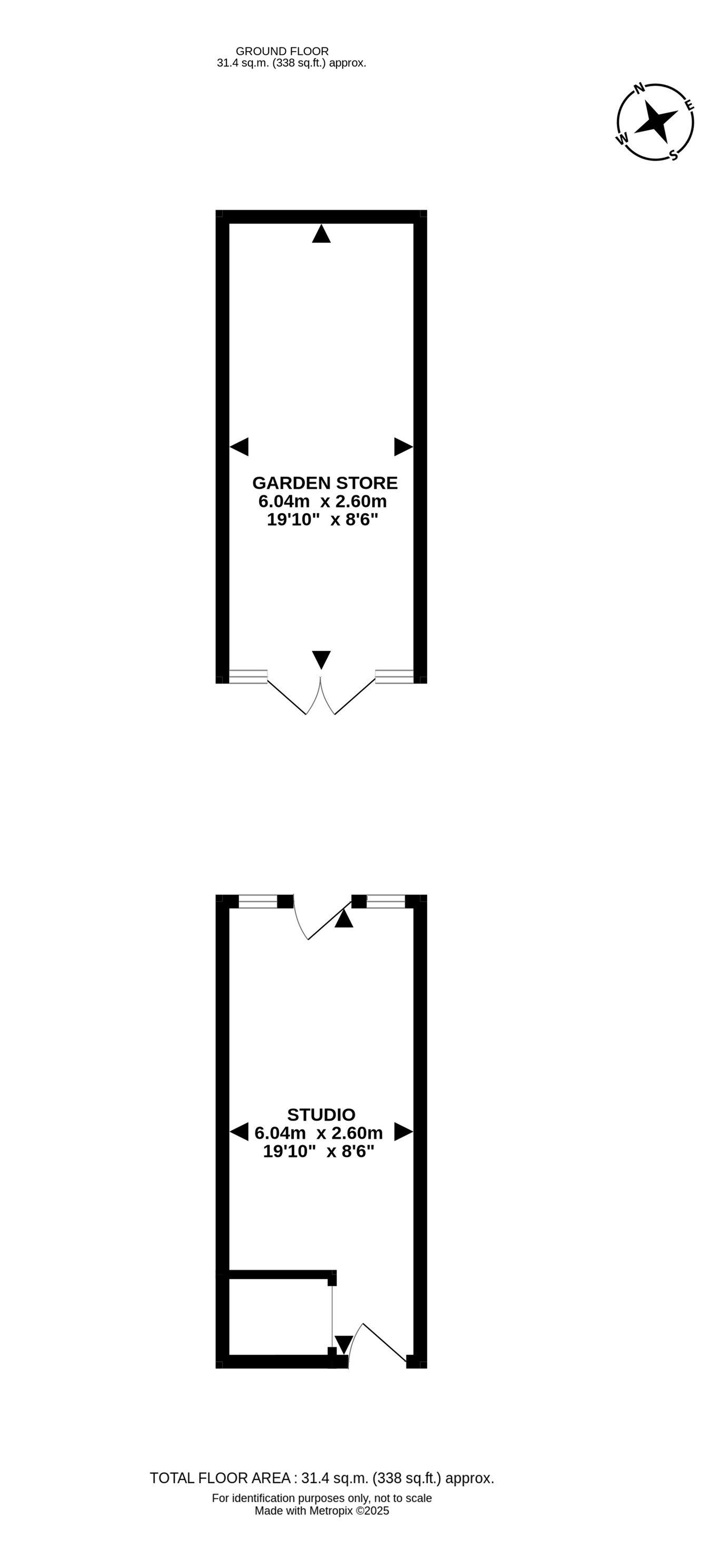 - Two large outbuildings (6.00m x 2.60m each) one a studio for hobbies/office, the other a useful garden store