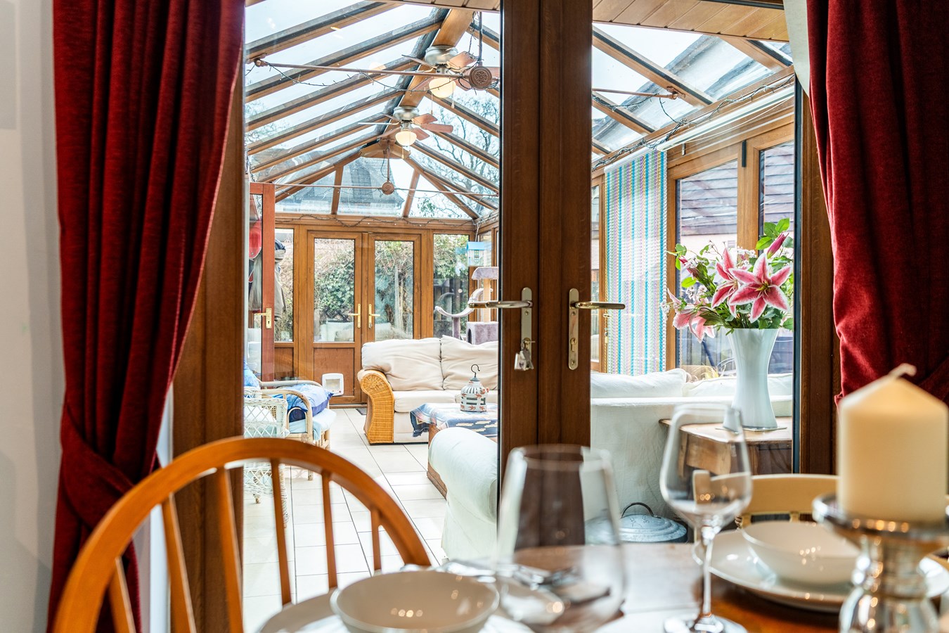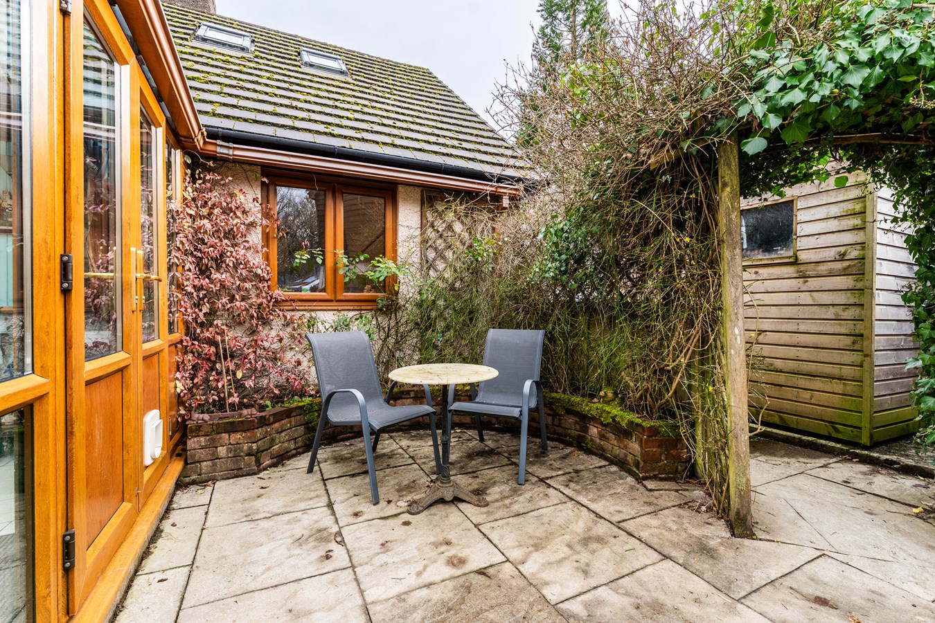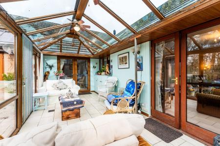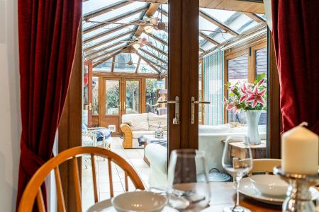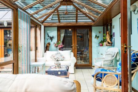 - Bright reception with bay window, woodburning stove & access to light-filled conservatory