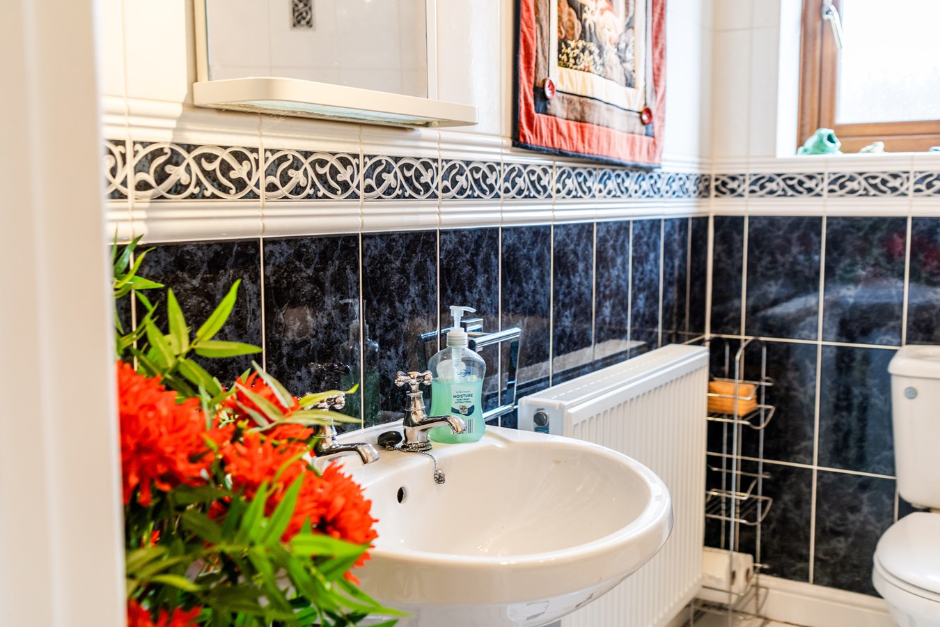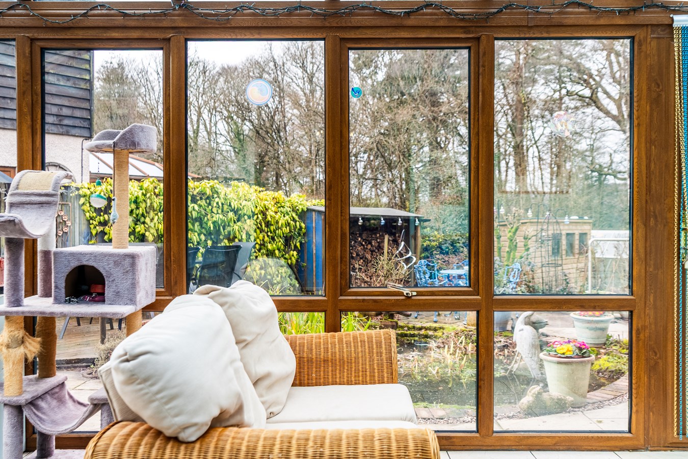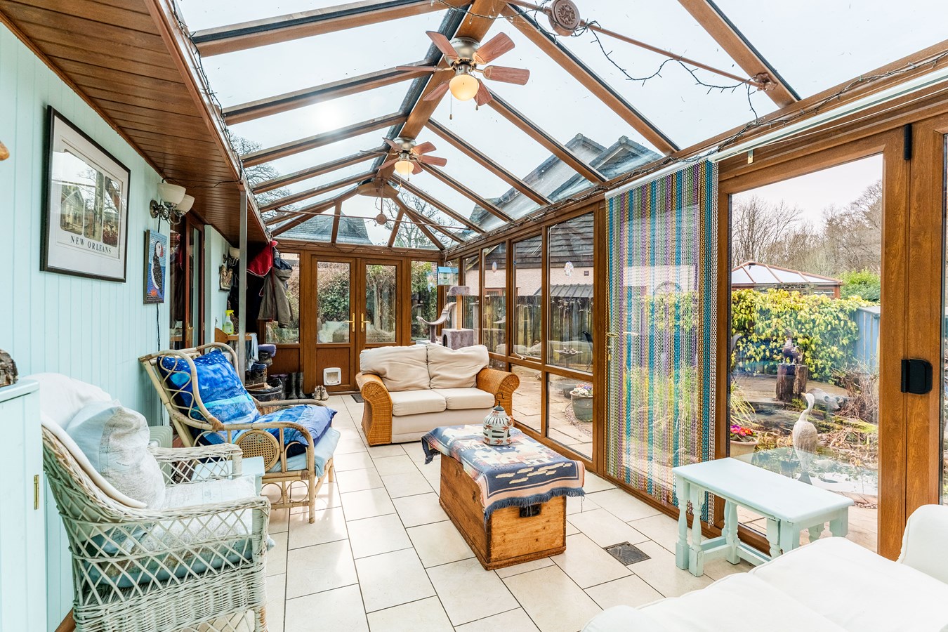 - Bright reception with bay window, woodburning stove & access to light-filled conservatory