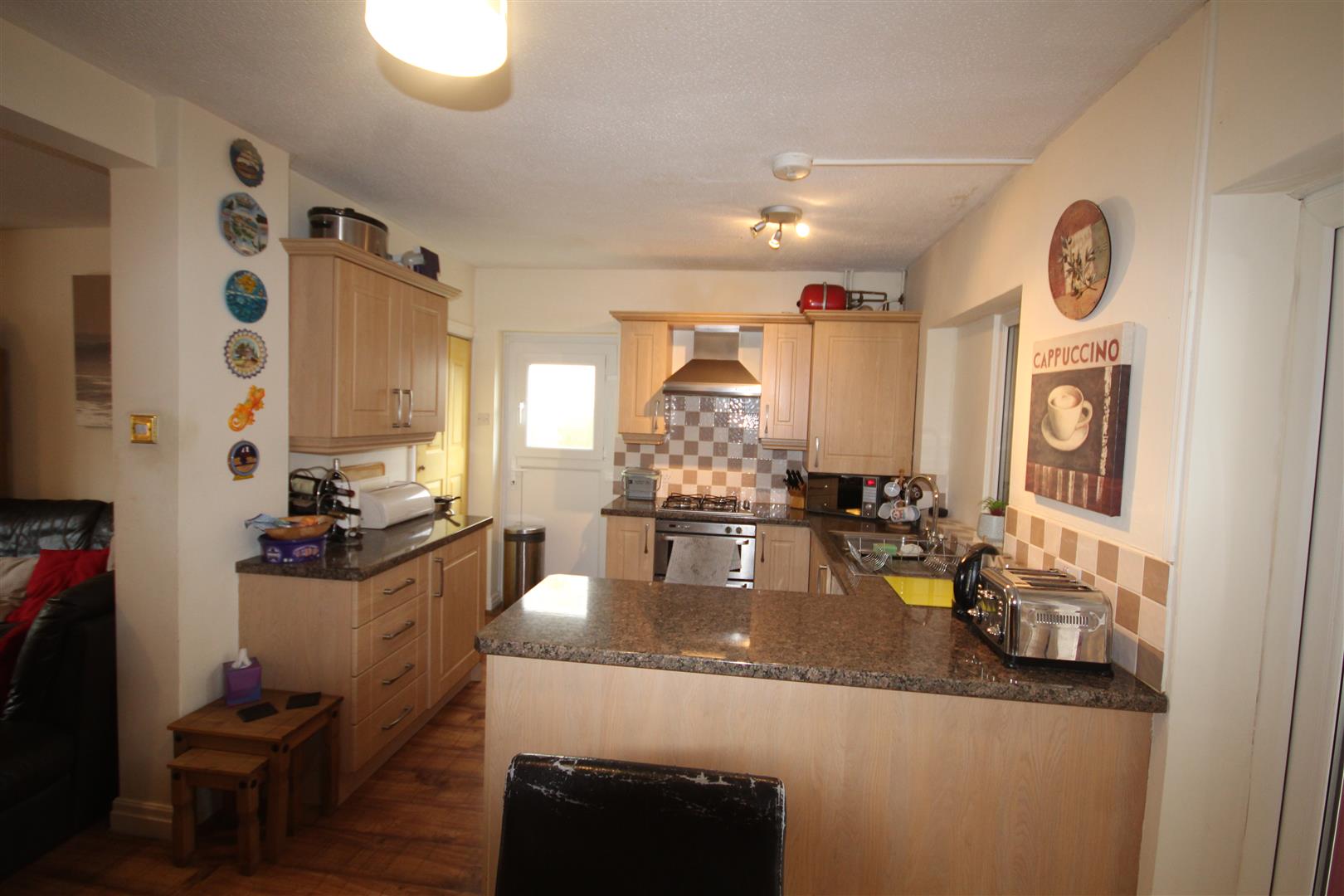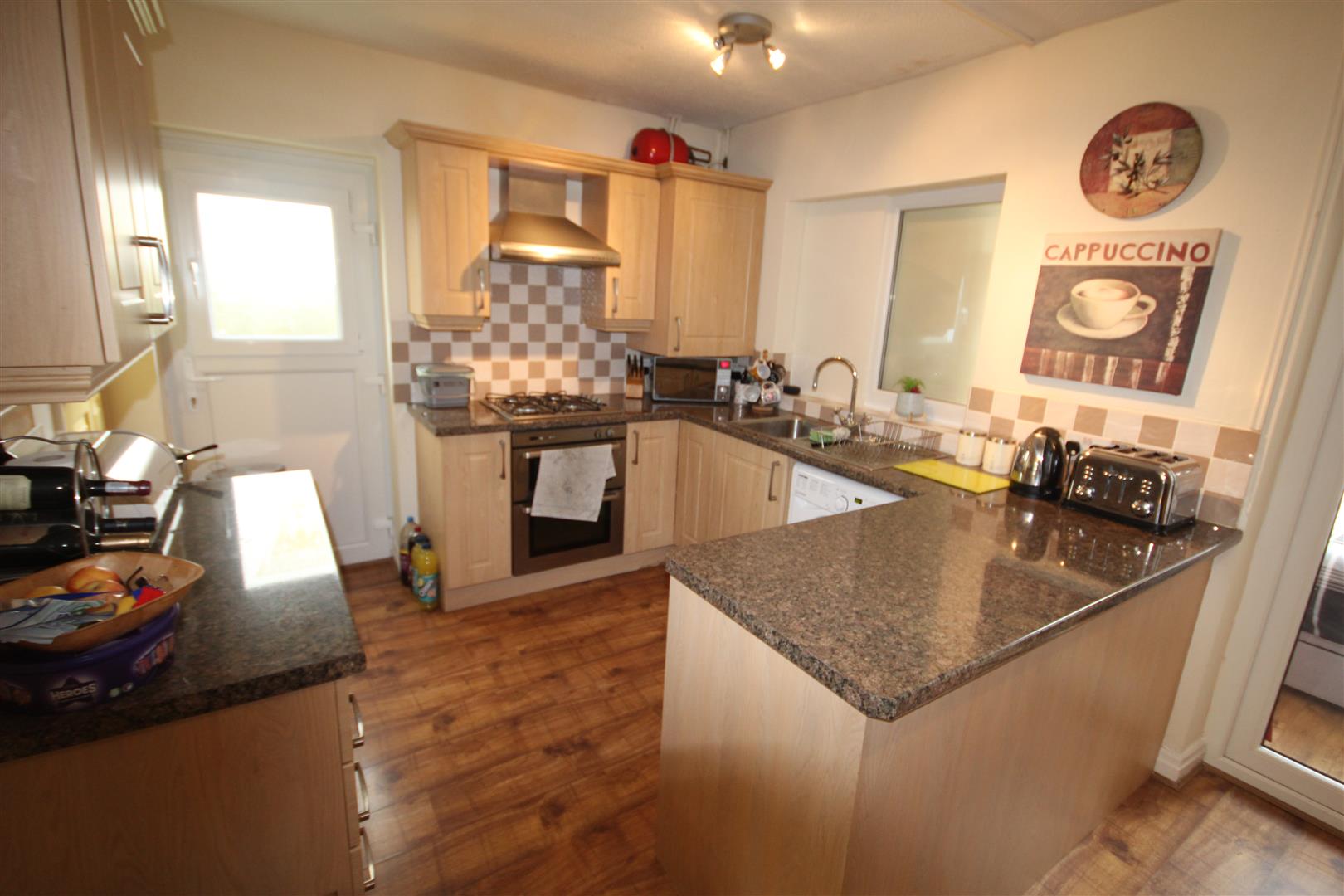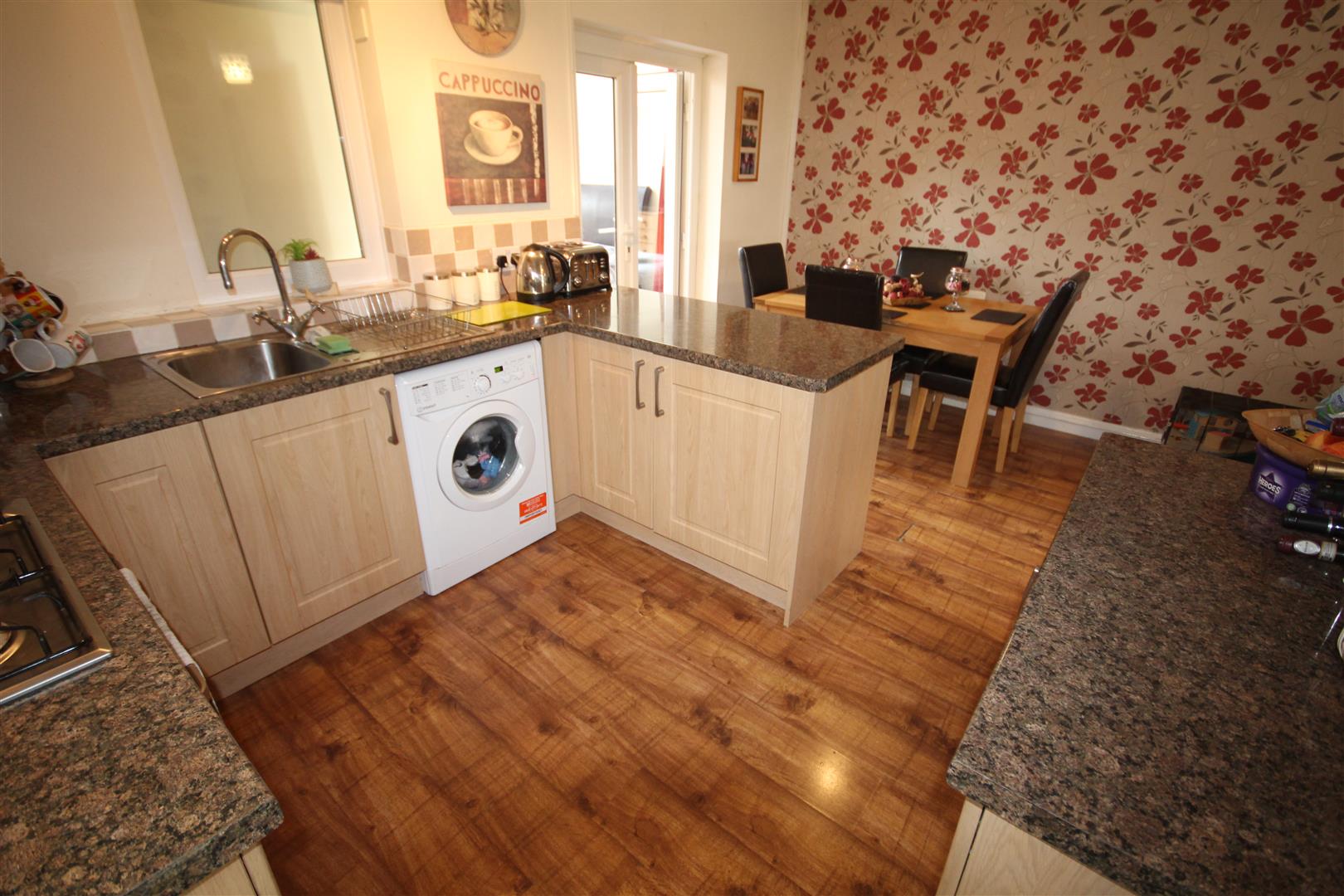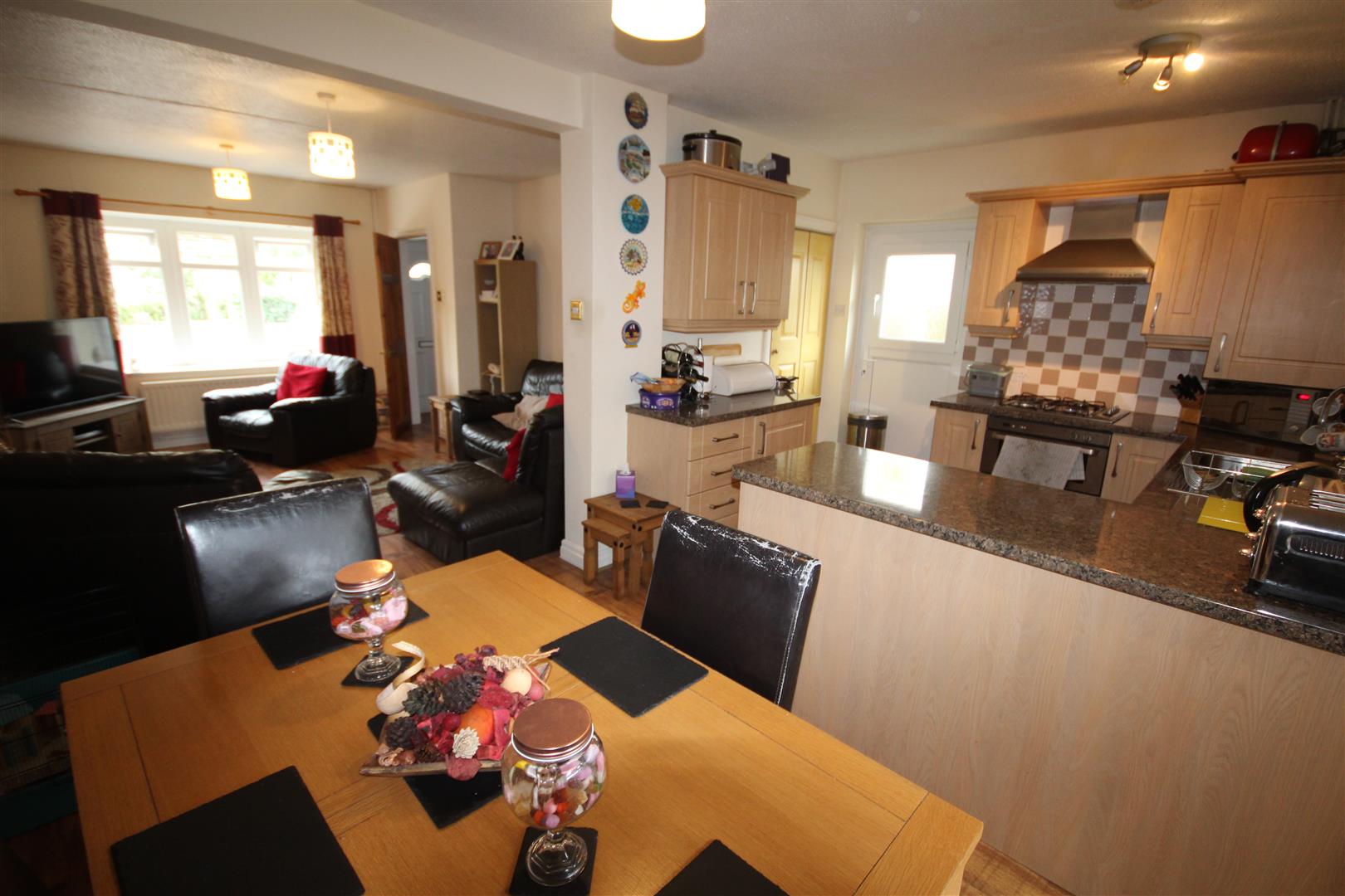Dining Kitchen - 4.75m x 2.90m (15'7 x 9'6) - Beech style base cupboards and drawer with terrazzo style work top surfaces, 4 ring gas hob unit, built in oven, stainless steel cooker hood, plumbing for washing machine, gas centraal heating boiler, stainless steel sink unit, double glazed, stable door, under stairs cupboard, laminate flooring,