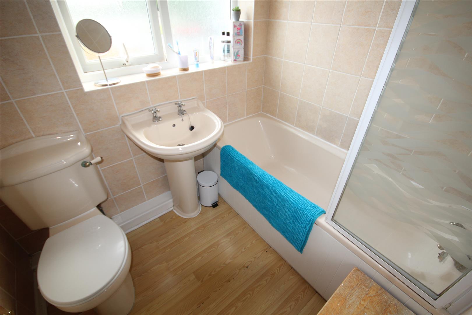 Bathroom - 1.83m x 1.80m (6' x 5'11) - Panel bath, shower unit and screen, predestal wash hand basin, w.c, double glazed, laminate flooring, heated towel radiator