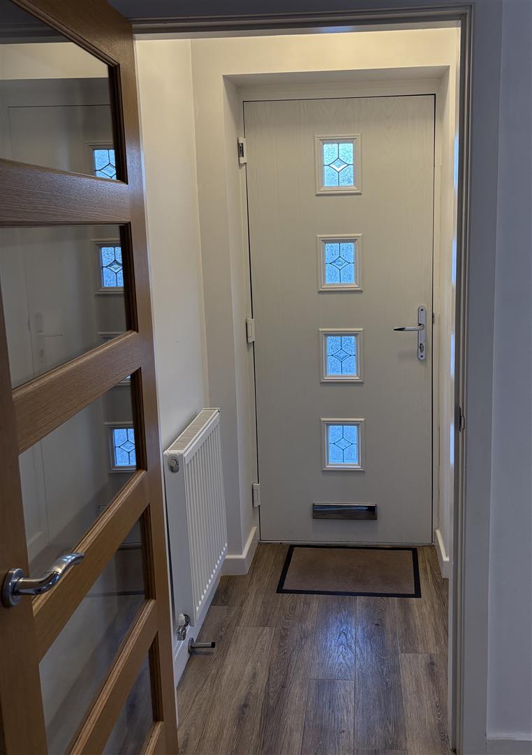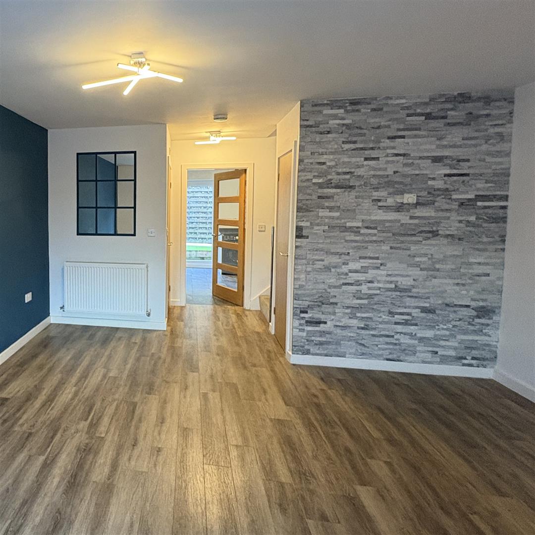 Large Lounge - 6.32m x 4.27m (20'9 x 14') - Double glazed privacy glass square bay window, central heating radiator, wood effect flooring, feature wall, under stairs cupboard