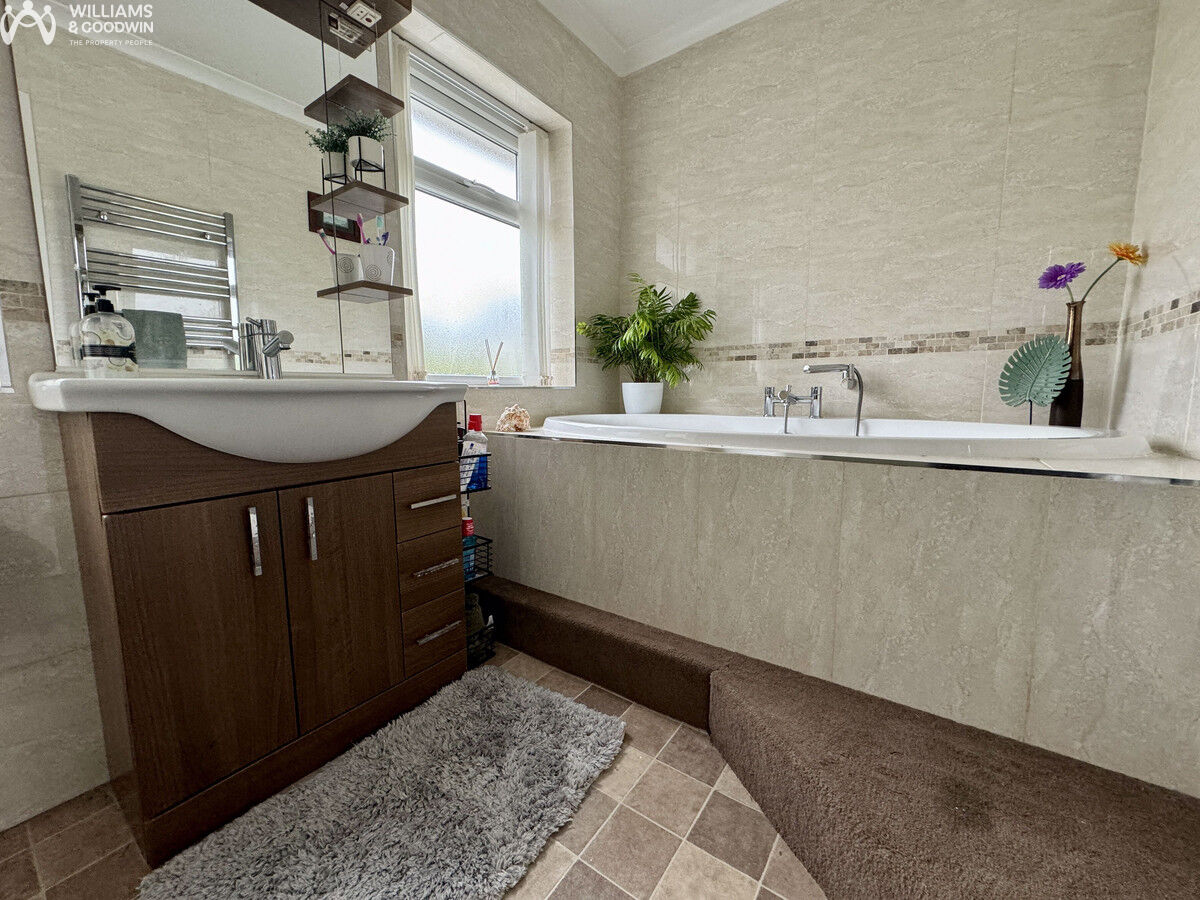 The ground floor features a welcoming entrance hall, leading to a bright and spacious lounge with French doors opening onto the garden, creating the perfect space for entertaining or relaxed family living. A contemporary fitted kitchen/diner serves as the heart of the home, complemented by three well-proportioned bedrooms and a luxurious family bathroom.