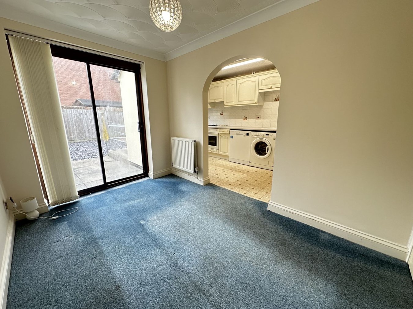 This three bed, end of terrace house is situated in a popular location and with no onward chain, it is ready for you to put your own stamp on. On the ground floor there is an entrance hall, living room with understairs cupboard and French doors opening into the dining room. The dining room has sliding patio doors opening on to the garden and opens through to the kitchen which has plenty of cupboard space and an integrated oven and gas hob. Upstairs there are three bedrooms and a shower room. Outside at the front there is a parking space in front of the garage (2.79 x 5.58) which has an up and over door, power and lighting. The front and rear gardens are easily managed made up of paved patio areas and slate chippings. There is also a good size garden shed and rear pedestrian access. An ideal starter home or investment, viewing is recommend.