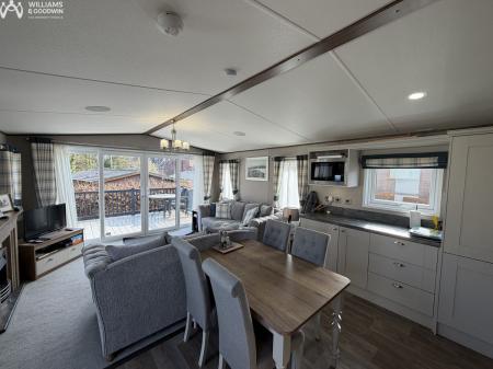 The lodge features three bedrooms, catering perfectly to families or those who enjoy hosting guests. The open-plan living, dining, and kitchen area provides a modern space for relaxation and entertainment with the kitchen being fitted with a range of built in appliances.