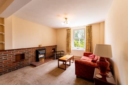 - Bright and welcoming main reception room featuring an electric fireplace and handy understairs storage