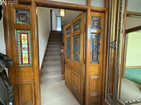 Nestled in the village of Bodffordd, this five-bedroom detached house offers a harmonious blend of traditional charm and modern convenience. Set within approximately 3.8 acres of land, the property boasts a spacious layout ideal for family living. The interior is graced with elegant stained glass windows, adding a touch of character and sophistication to the home. The conservatory provides a space to unwind, overlooking the well-presented rear garden that promises privacy and relaxation. A courtyard with ample off-road parking for several vehicles ensures convenience, while the garage offers additional storage or workshop potential.