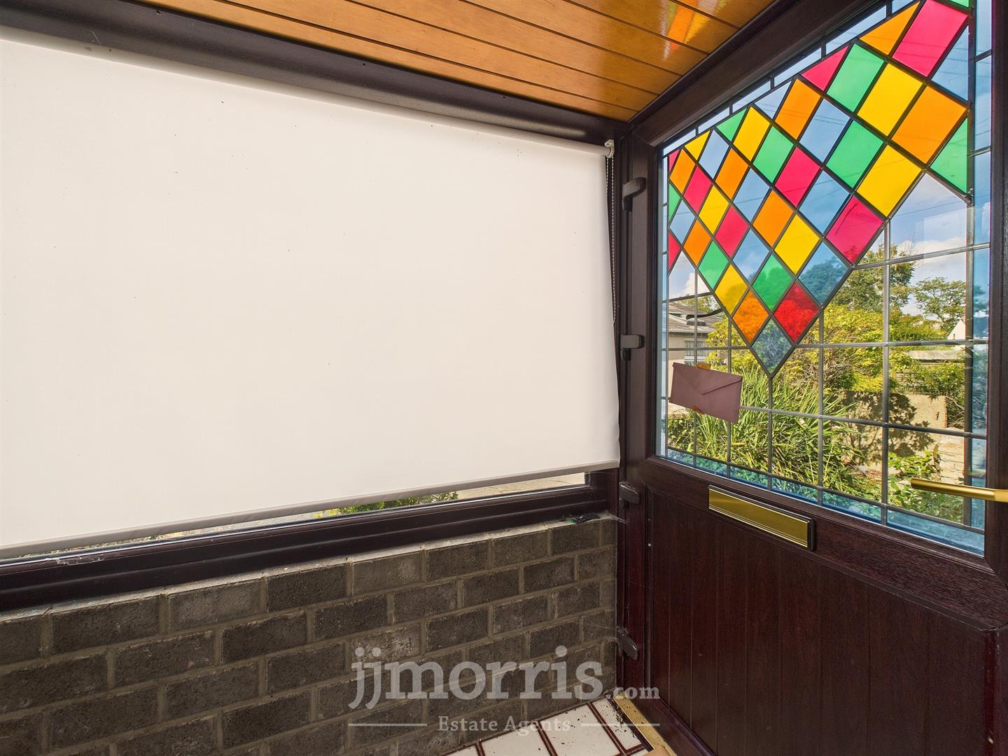 Entrance Porch - uPVC double glazed door with stained glass insert, wall lights, tongue and groove clad ceiling. Further leaded light uPVC door into:
