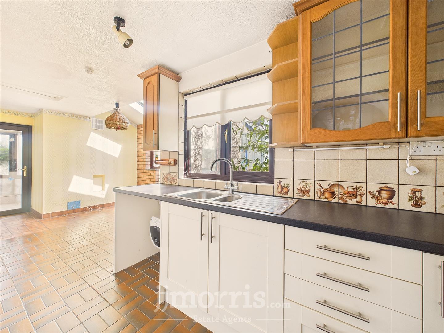 Kitchen / Dining Room - 1.5 x 3.4 opening into 3.0 x 3.5 (4'11" x 11'1" op - Quarry tiled flooring, part tiled walls, electric cooker point with extractor, stainless steel 1.5 bowl sink, fitted base and wall units. French doors open from the dining area to the rear garden.