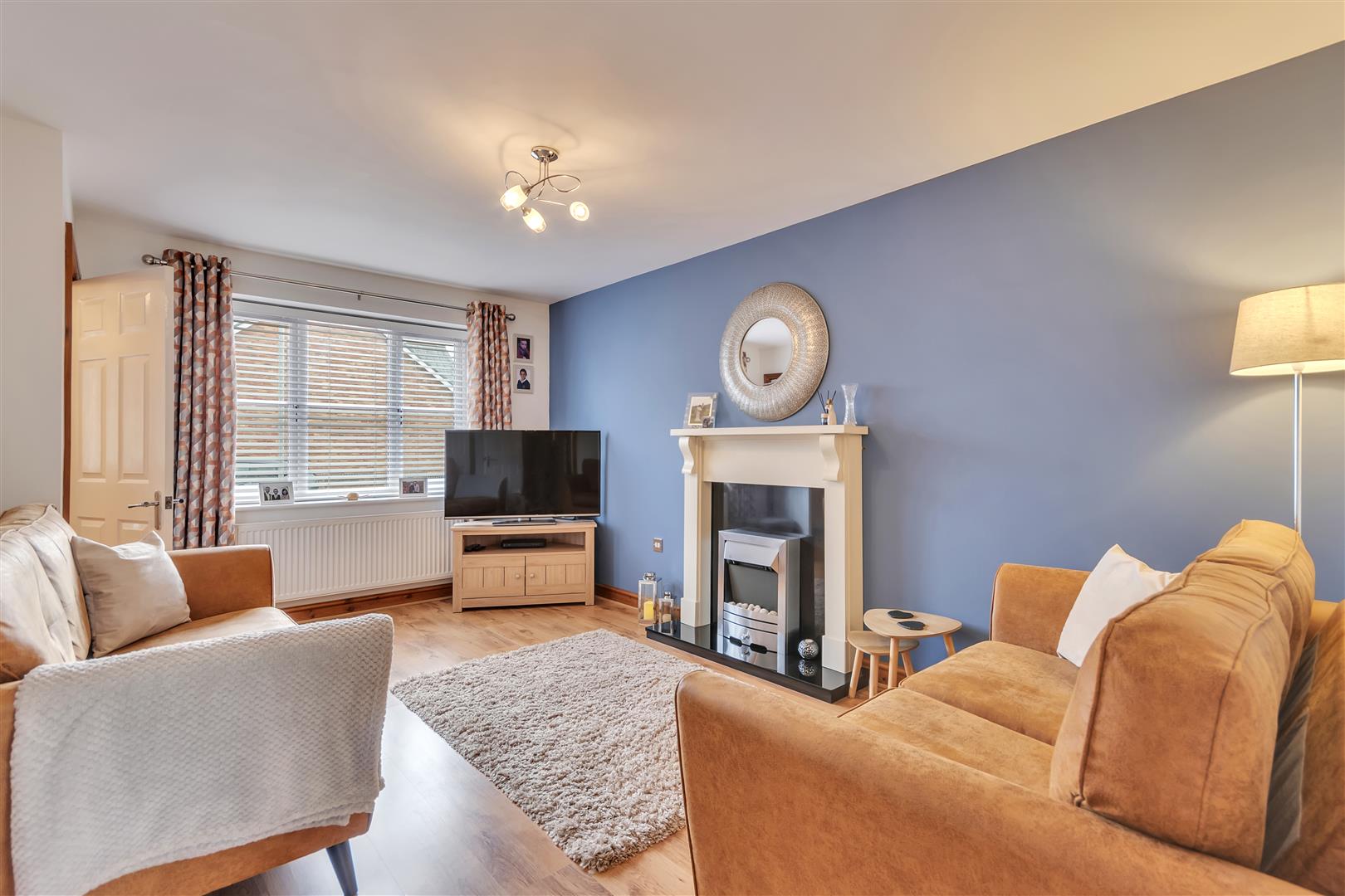 Lounge - 3.170 x 4.854 (10'4" x 15'11") - Front aspect UPVC windows, single panel radiator with thermostatic valve, electric fire, laminate wood flooring, under stairs storage cupboard