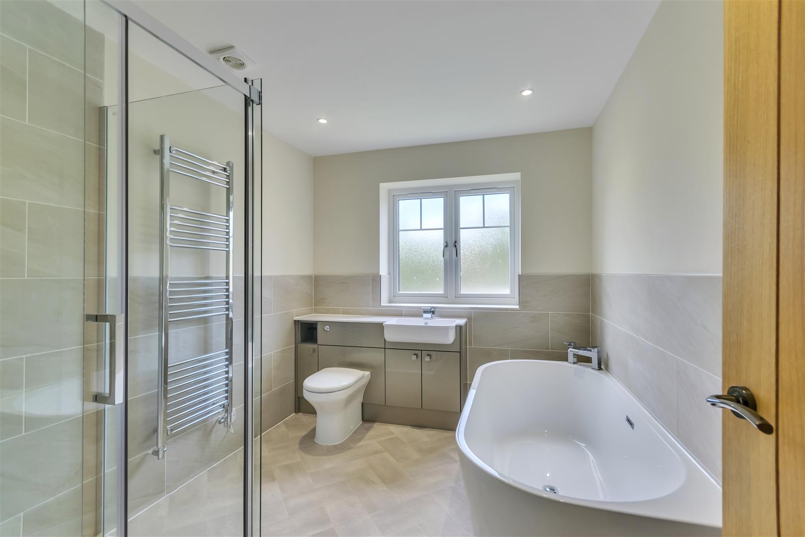 Family Bathroom - 3.371 x 2.408 (11'0" x 7'10") - Frosted windows, bath, shower cubicle, heated towel rail., wood engineered flooring, hand basin and low level WC