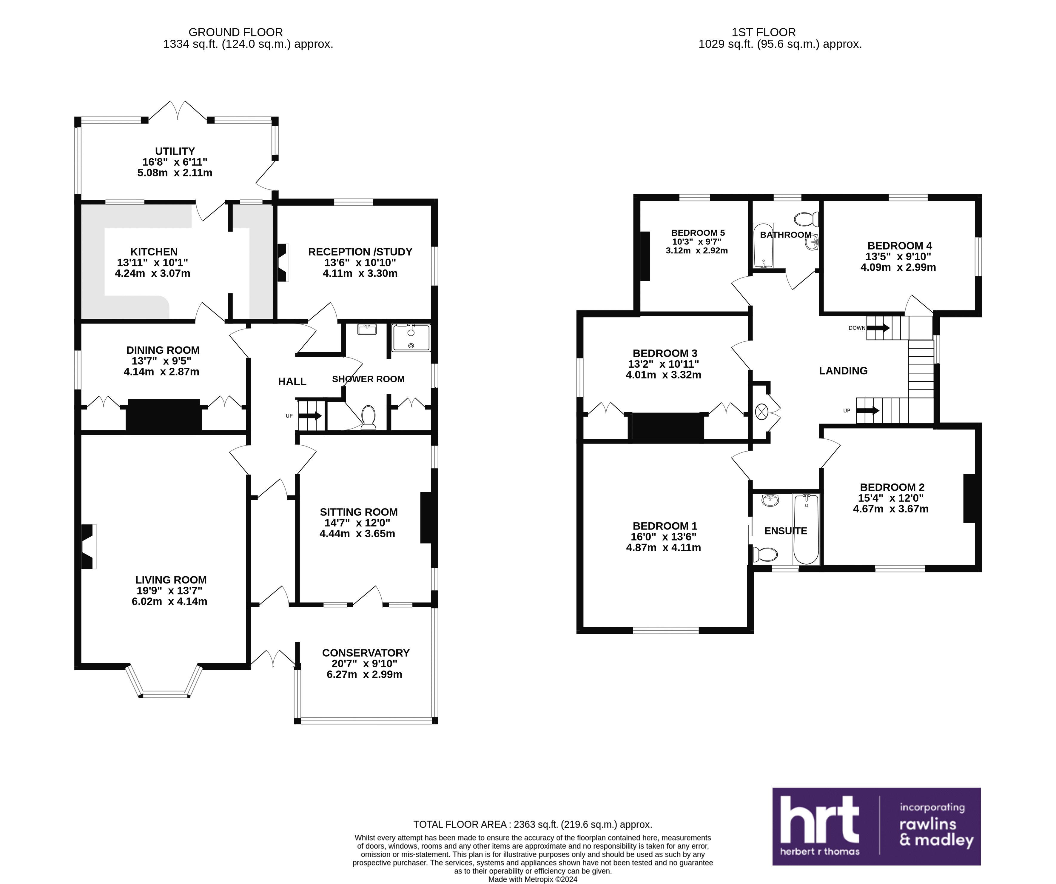 - Accommodation spans two floors and comprises 4 reception rooms, 5 double bedrooms, 3 bathrooms (1 en-suite & 1 ground floor shower room), kitchen, front conservatory and rear conservatory/utility