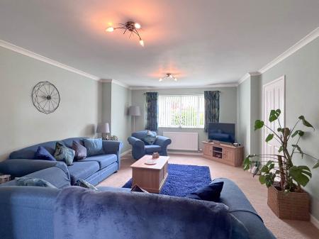 - Bright and spacious living room flowing into a modern kitchen/dining room