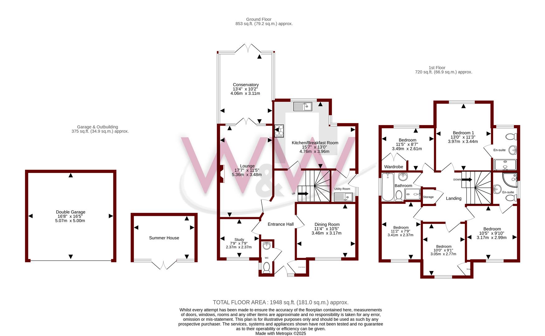 W&W are delighted to offer for sale this extremely well presented five bedroom detached family home situated in a small development made up of only three houses. Inside, the property boasts over 1500 sq.ft providing five bedrooms, lounge, modern kitchen/breakfast room, study, dining room, downstairs cloakroom, main bathroom & two en-suite shower rooms. The property benefits from a rear landscaped garden, detached double garage & driveway parking for multiple vehicles.