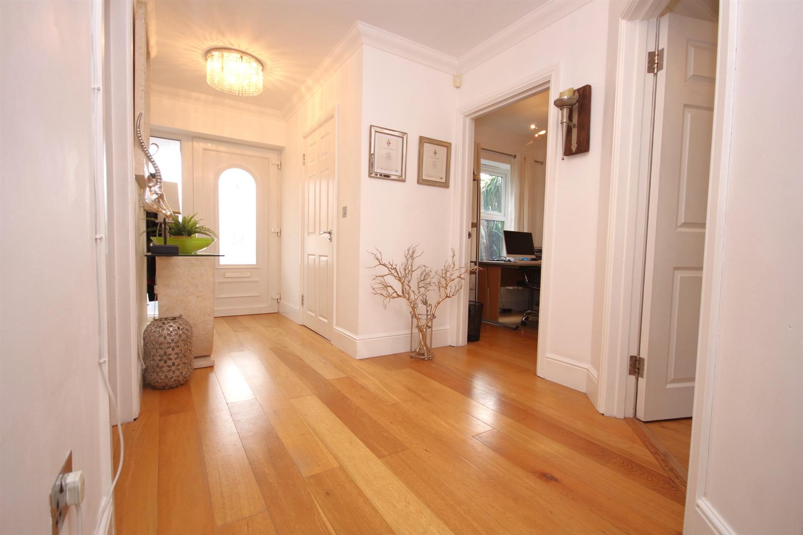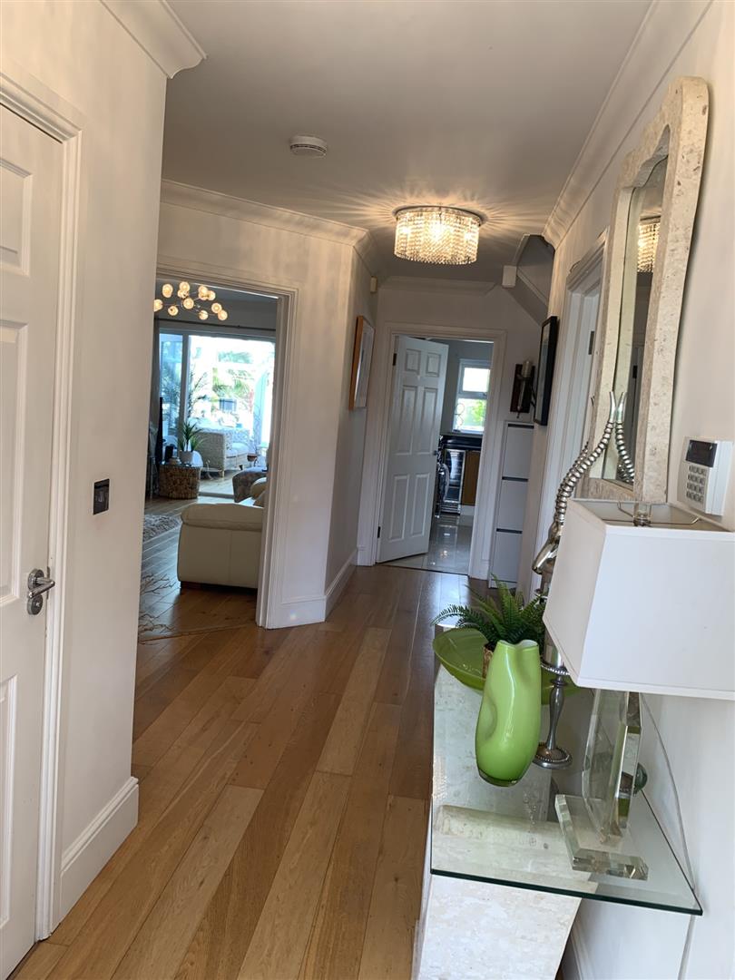 Welcoming entrance hall with solid wood flooring flowing into the lounge, study & dining room