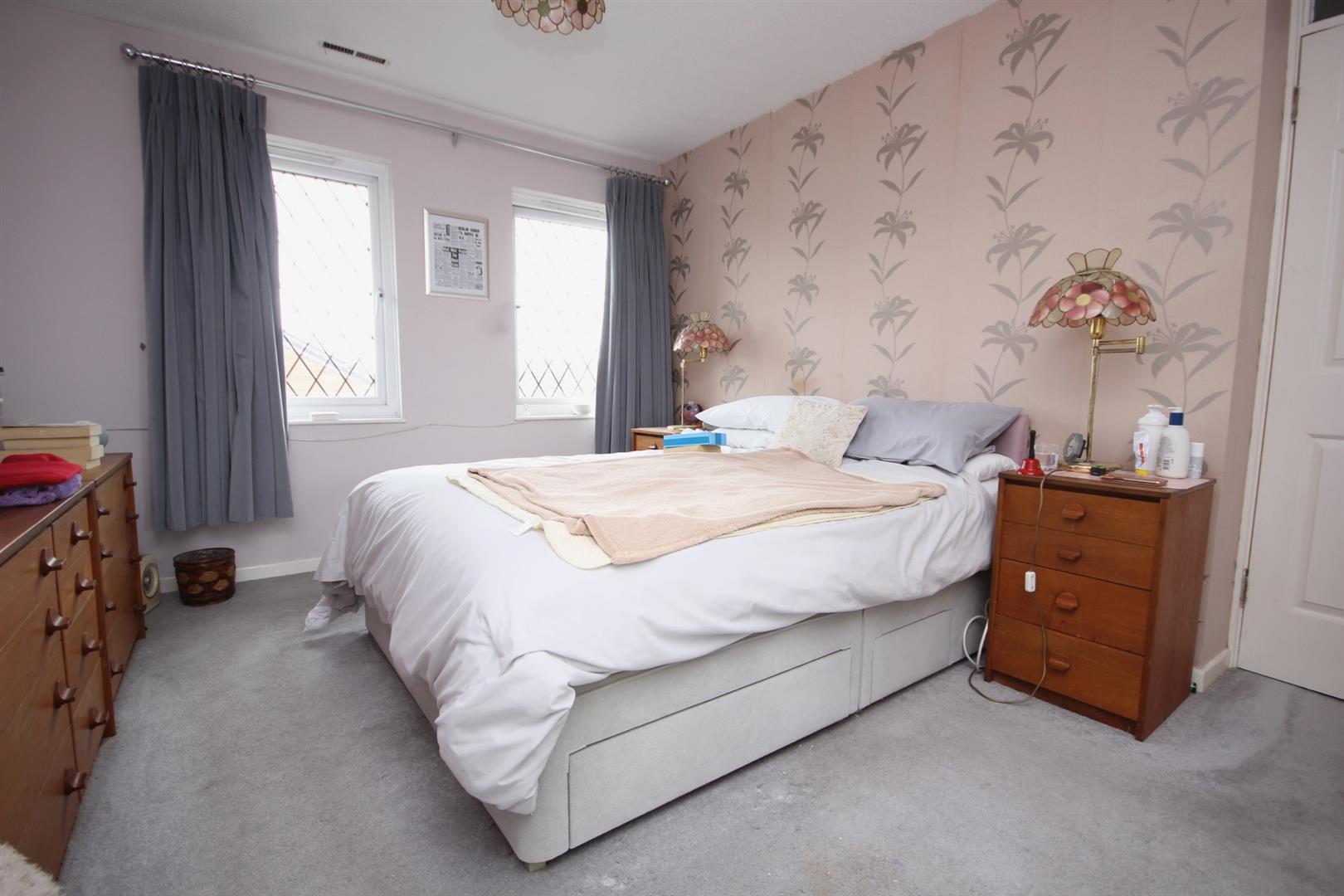 Main bedroom benefitting from built in wardrobes and twin windows