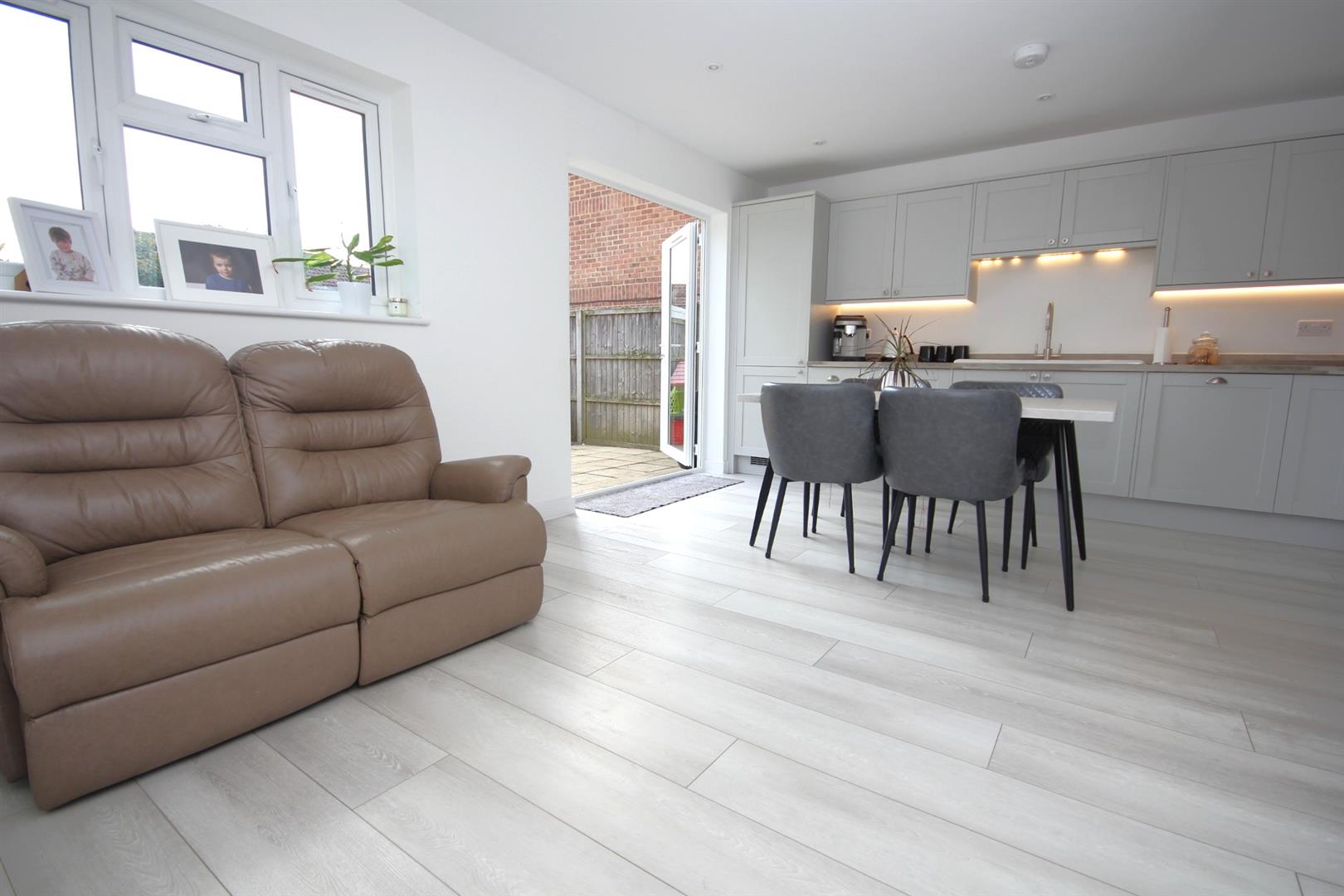 Impressive 17'9ft open plan kitchen/dining/family room with double doors opening out to the rear garden