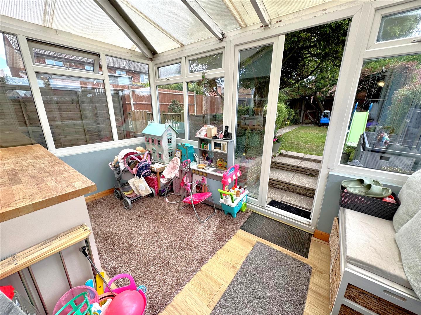 Conservatory with double doors opening out onto the rear garden