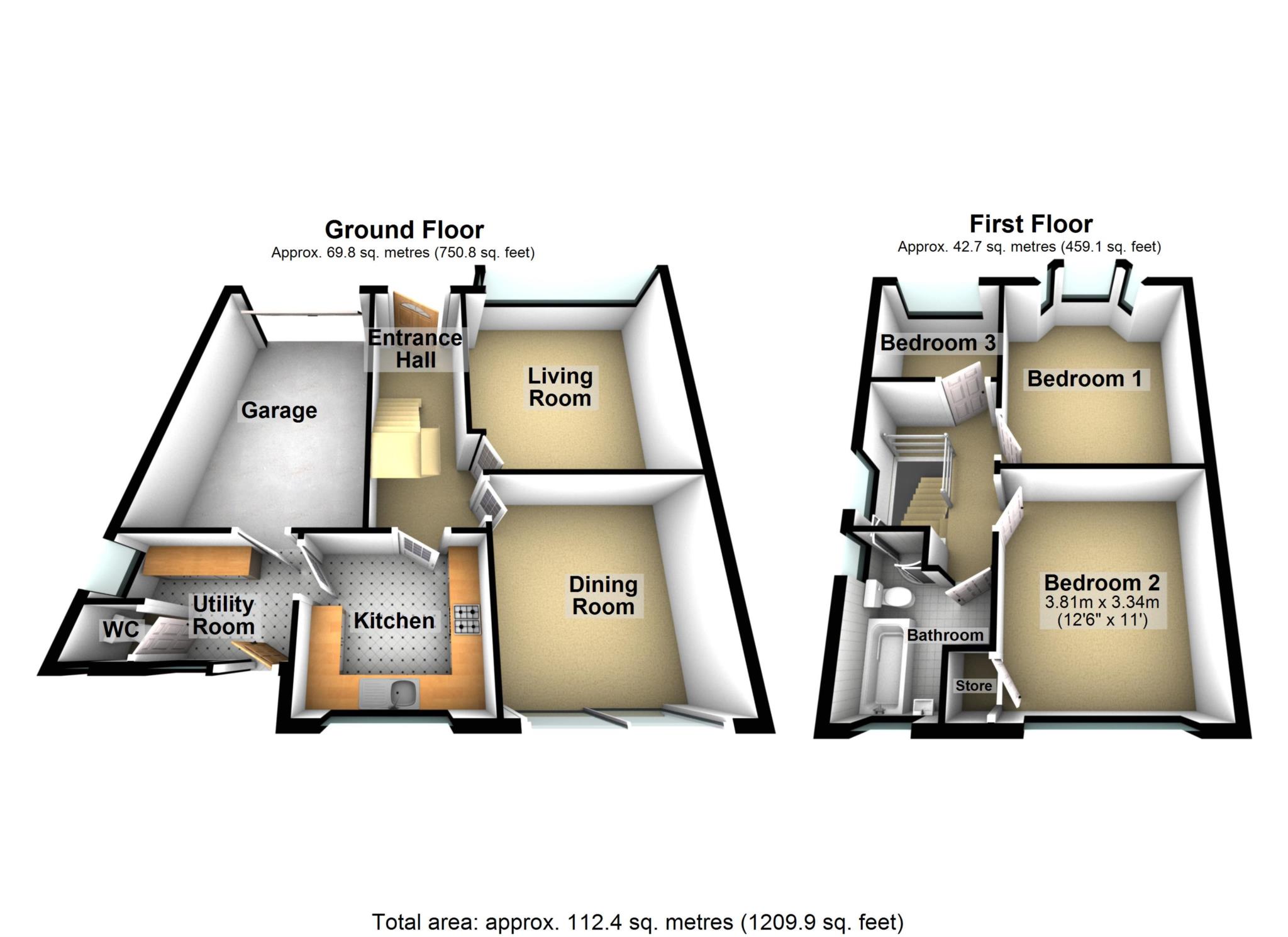The property provides everything a family could need. On the ground floor there is a good-sized Living Room, a separate Dining Room (with doors leading onto the patio area), a Kitchen (with a large separate Utility Room that has a W/C) and access into the Garage.
