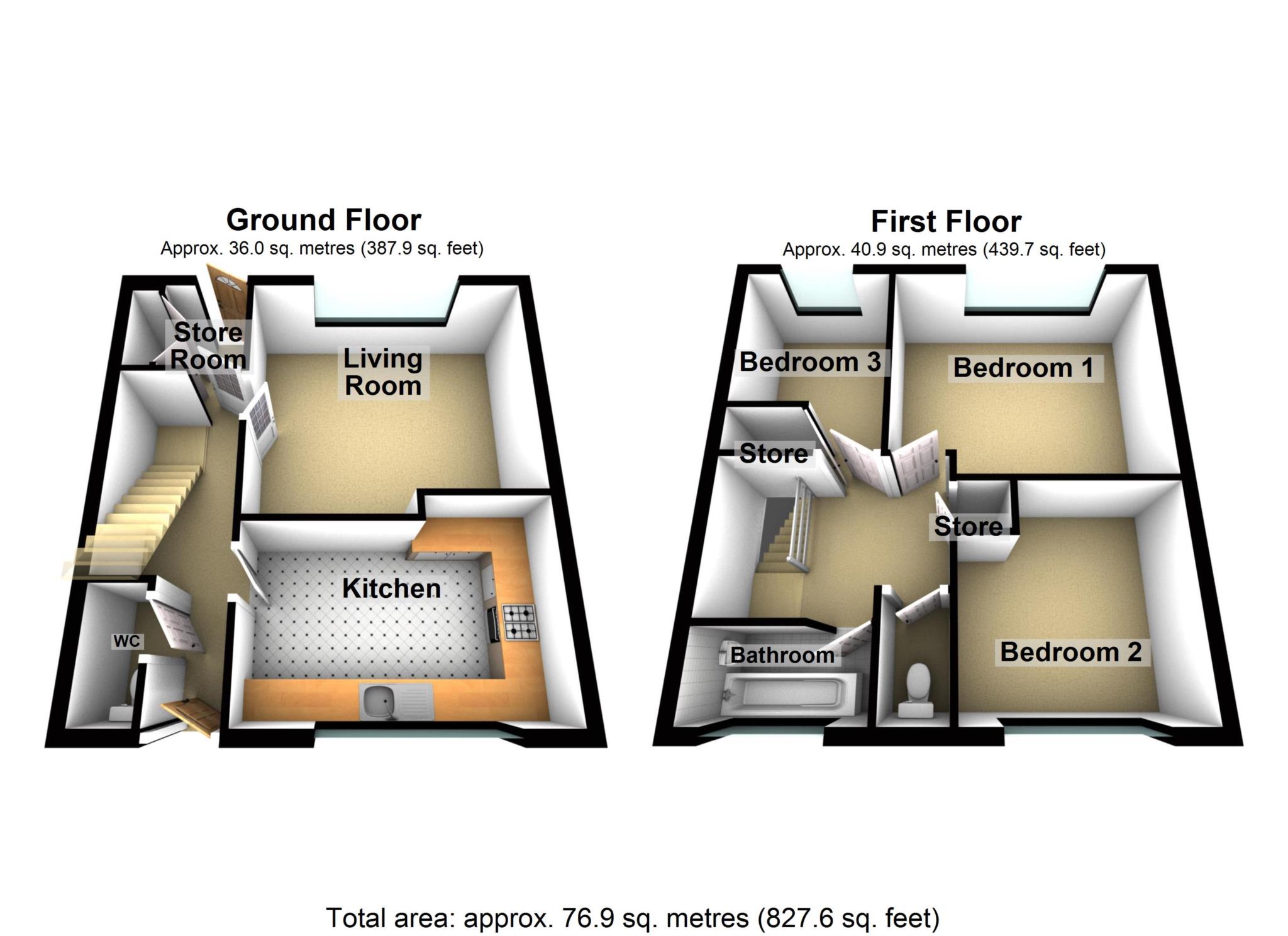 Accommodation comprises Living Room, a spacious Kitchen that offers plenty of space for a table and chairs, a ground floor W/C and a handy Storage Room.