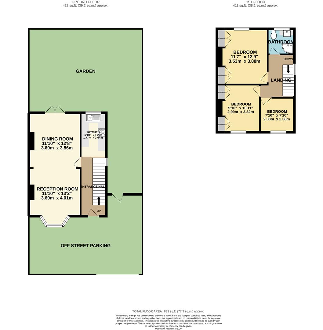 The total floor area is approximately 833 SQ FT (77.3 SQ.M)