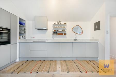 The upper floor features a spacious open plan lounge and kitchen area, carefully configured to maximise natural light, space and outlook. This stylish and inviting room includes Bosch appliances, an induction hob, and ample room for dining and entertaining, complemented by far reaching views across Barnes Elms and the surrounding greenery.