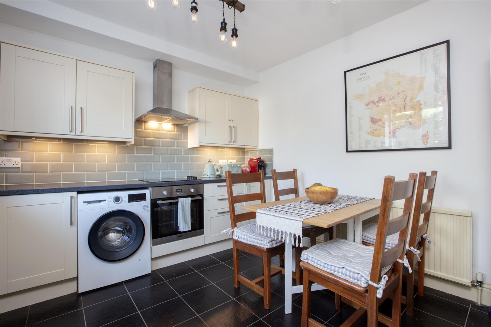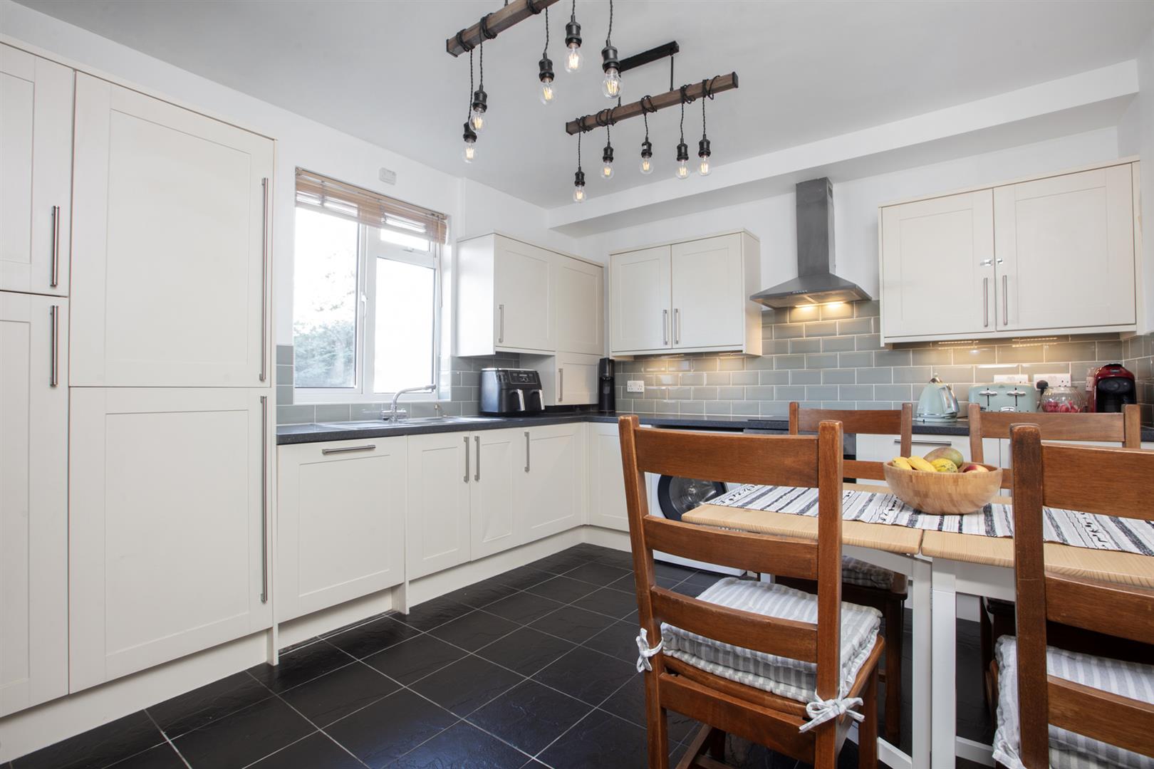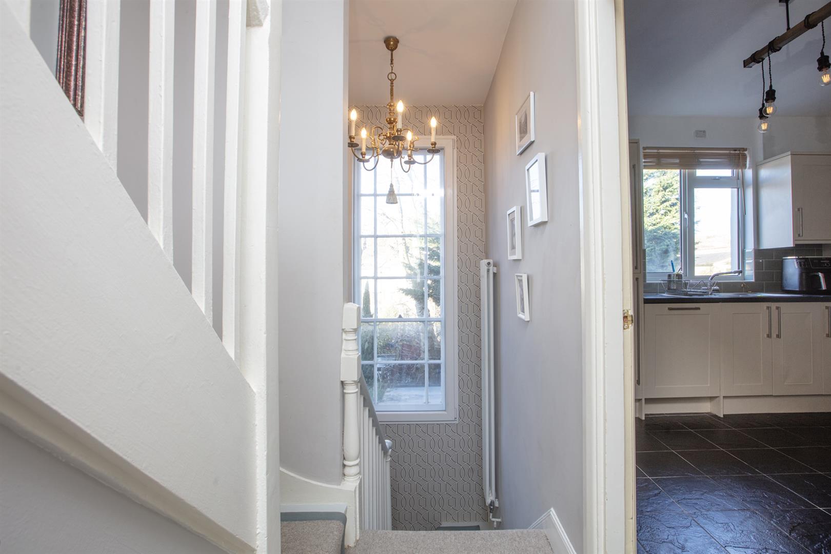 The handsome period exterior sits alongside similarly attractive homes. A set of sets lead up to a raised communal entrance. Your inner entrance is light and inviting with a huge rear facing double-height sash window affording the upper and lower halls splendid light. Double glazing ensures a peaceful and toasty vibe. The first floor initially introduces the newly painted contemporary kitchen/diner which boasts plentiful modern cabinets and a rear facing casement window. Appliances include a four ring electric hob, oven, integrated dishwasher and fridge/freezer. There's plenty of dining space and dimmable lighting for date night!