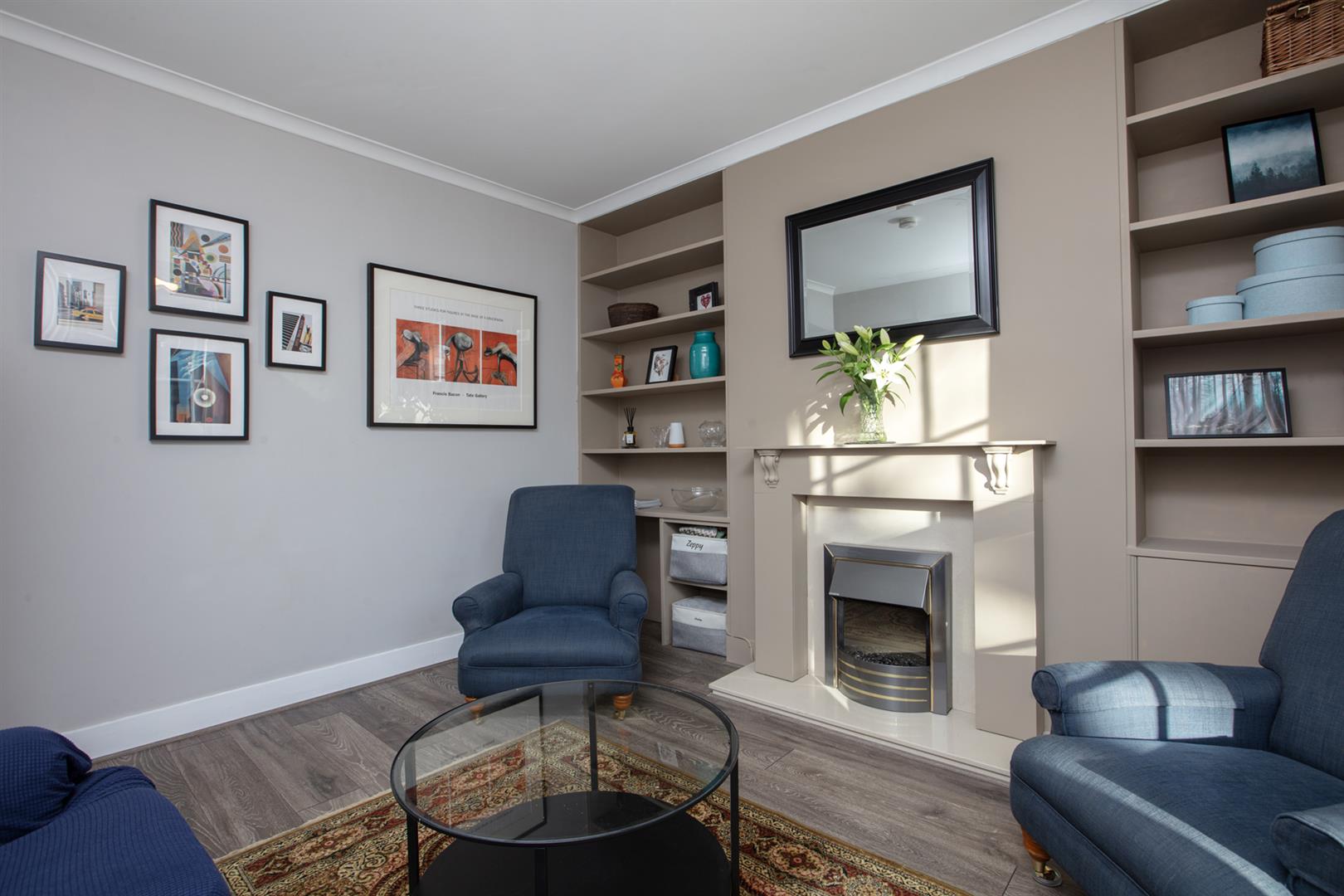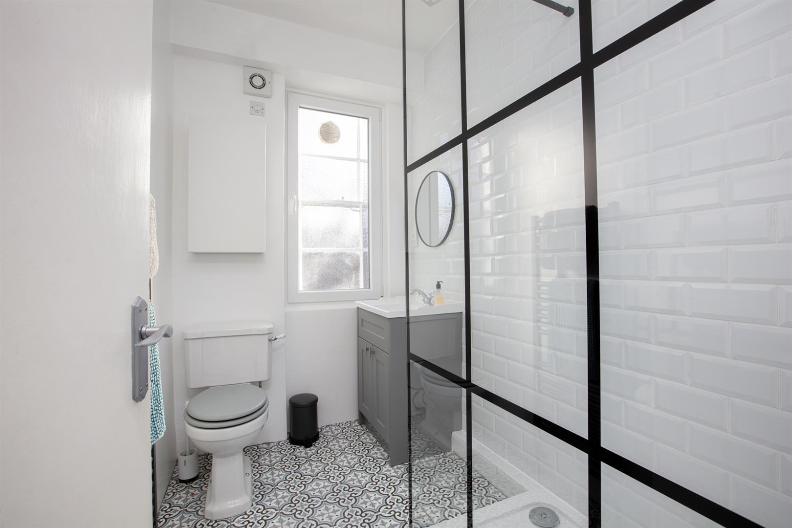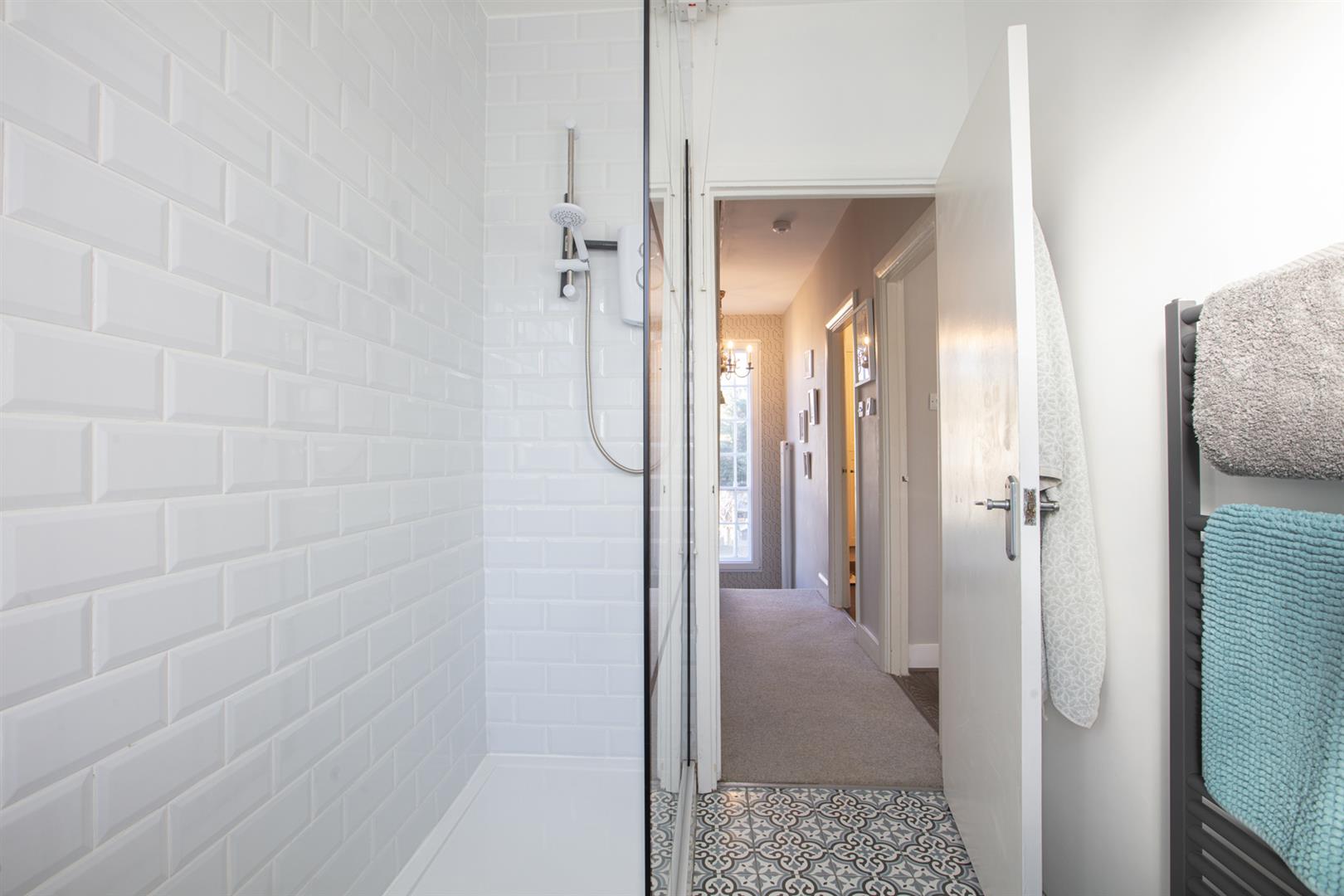 Next comes a gorgeous front-facing reception with complimentary Farrow and Ball tones, 'Cornforth White' and 'London Stone'. There's a delightful period mantel with storage and shelving neatly tucked either side. Brand new 8mm wood effect flooring suits the space perfectly. Completing the first floor is a brand spanking, newly renovated bright and bold shower room. Here you will find a double walk-in shower, fresh and elegant tiles on the walls and floor, giving a spacious, clean and modern vibe.