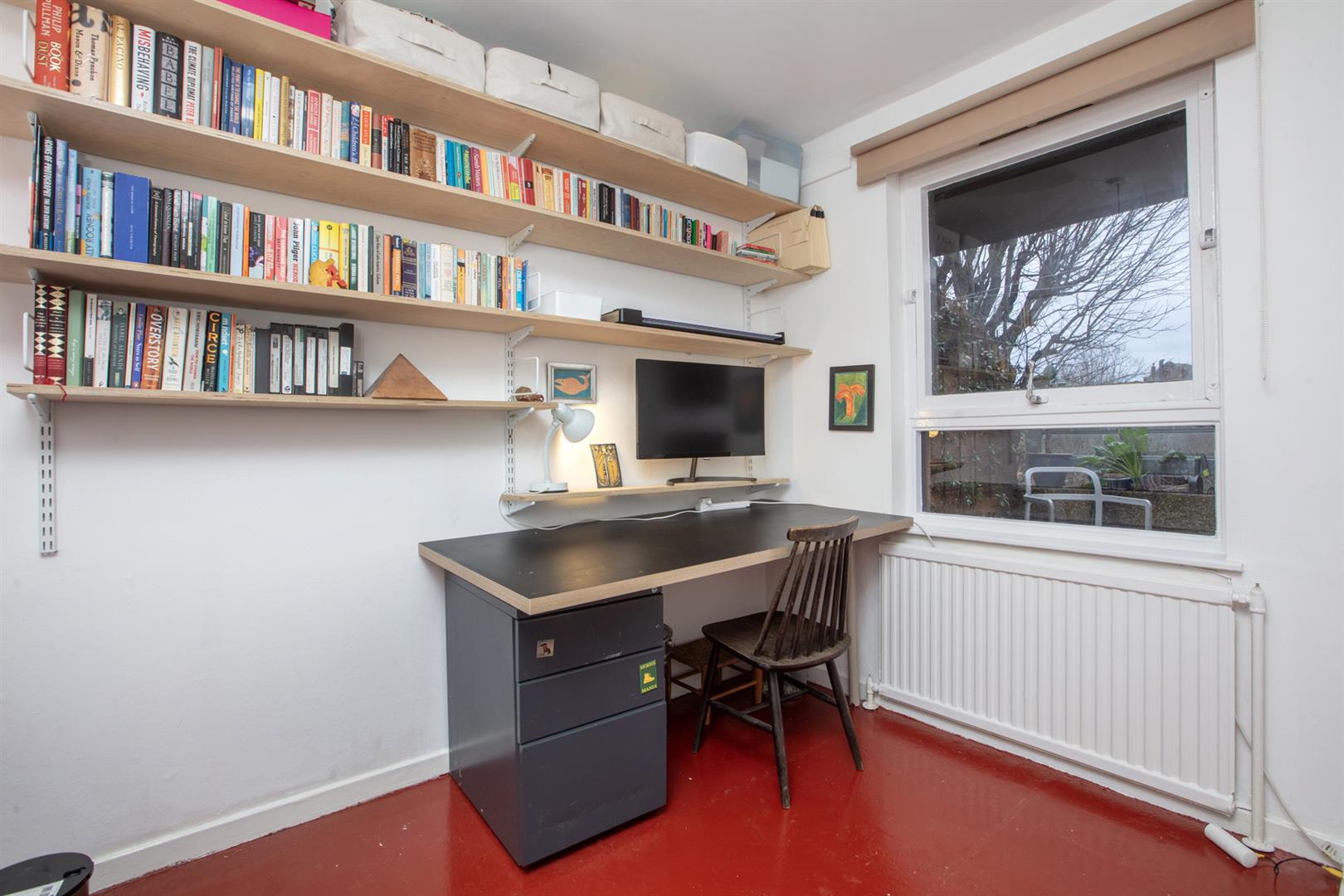 A private entrance hall enjoys terracotta tiling, fitted storage and tonnes of recessed space perfect for bikes or prams. The stairs has been painted a rich red and leads upward to a long landing with crisp white walls and reclaimed 'five finger' Parquet flooring. First on your left, past some recessed storage, is a fully tiled modern bathroom. All three of your bountiful bedrooms enjoy the same peaceful aspect and each has fitted storage. The master even boasts a walk-in wardrobe. Rising again to the top floor you find an L-shaped hall with pretty recessed book shelf preceding a neat guest wc. The dual aspect living space is the jewel in the crown enjoying over 300 sq ft of bright open-plan lounging, dining, cooking and entertaining space. Extra-long original casement windows afford a tonne of light and face over a large central communal greenspace. The spire of St Giles' Church adds to the ambience. There's more wonderful Parquet and some retro vinyl flooring in the kitchen area. A glass pane door opens to your private balcony which enjoys more leafy views over the communal grounds. A fourth bedroom, currently arranged as a study completes the tour nicely with some funky red flooring and space for both work-from-home and a day bed.