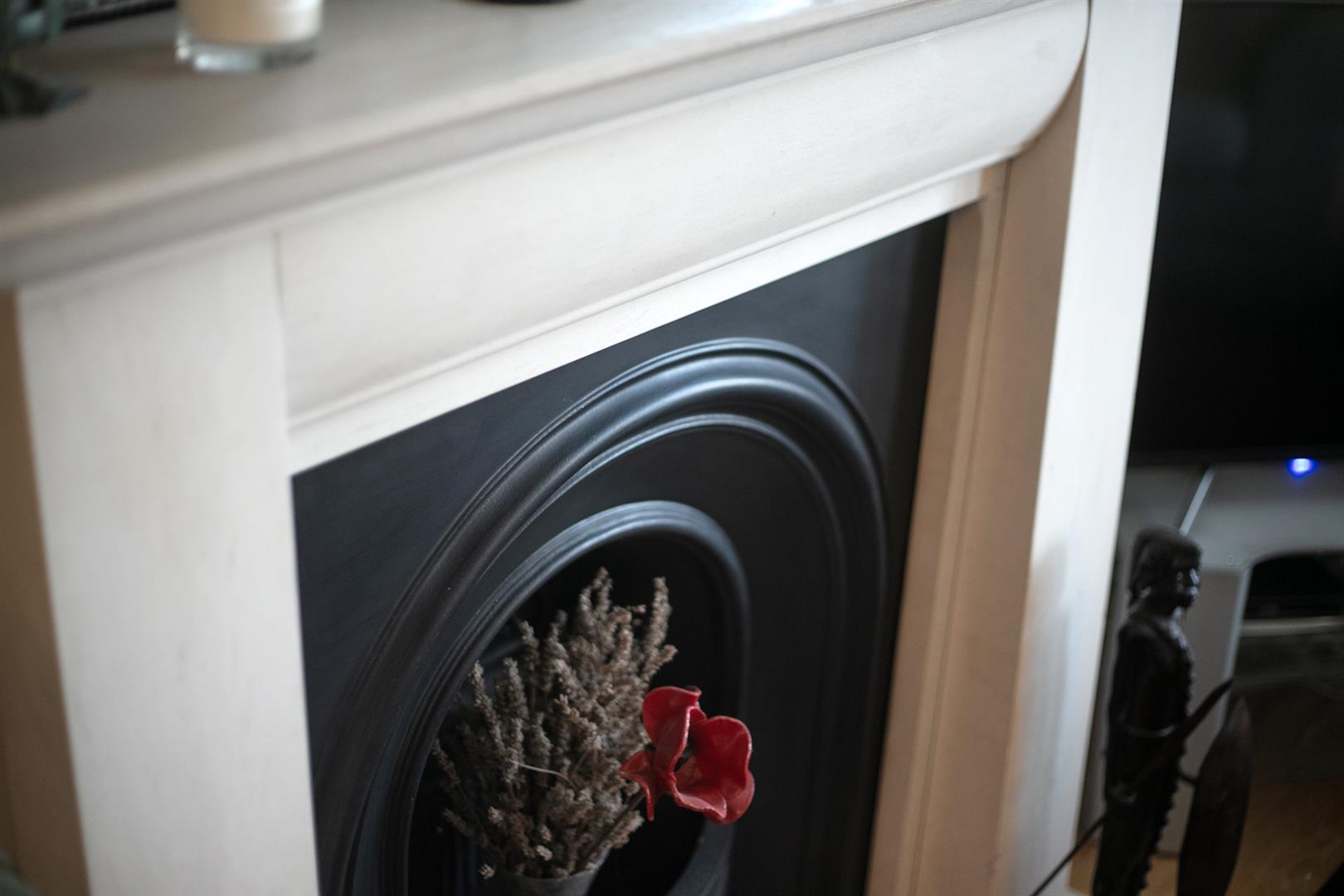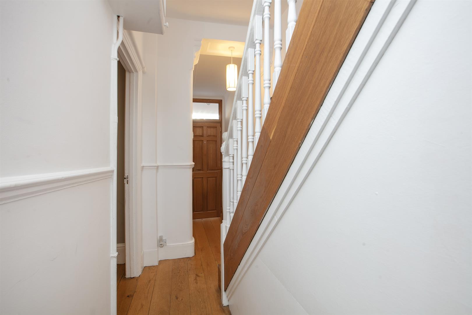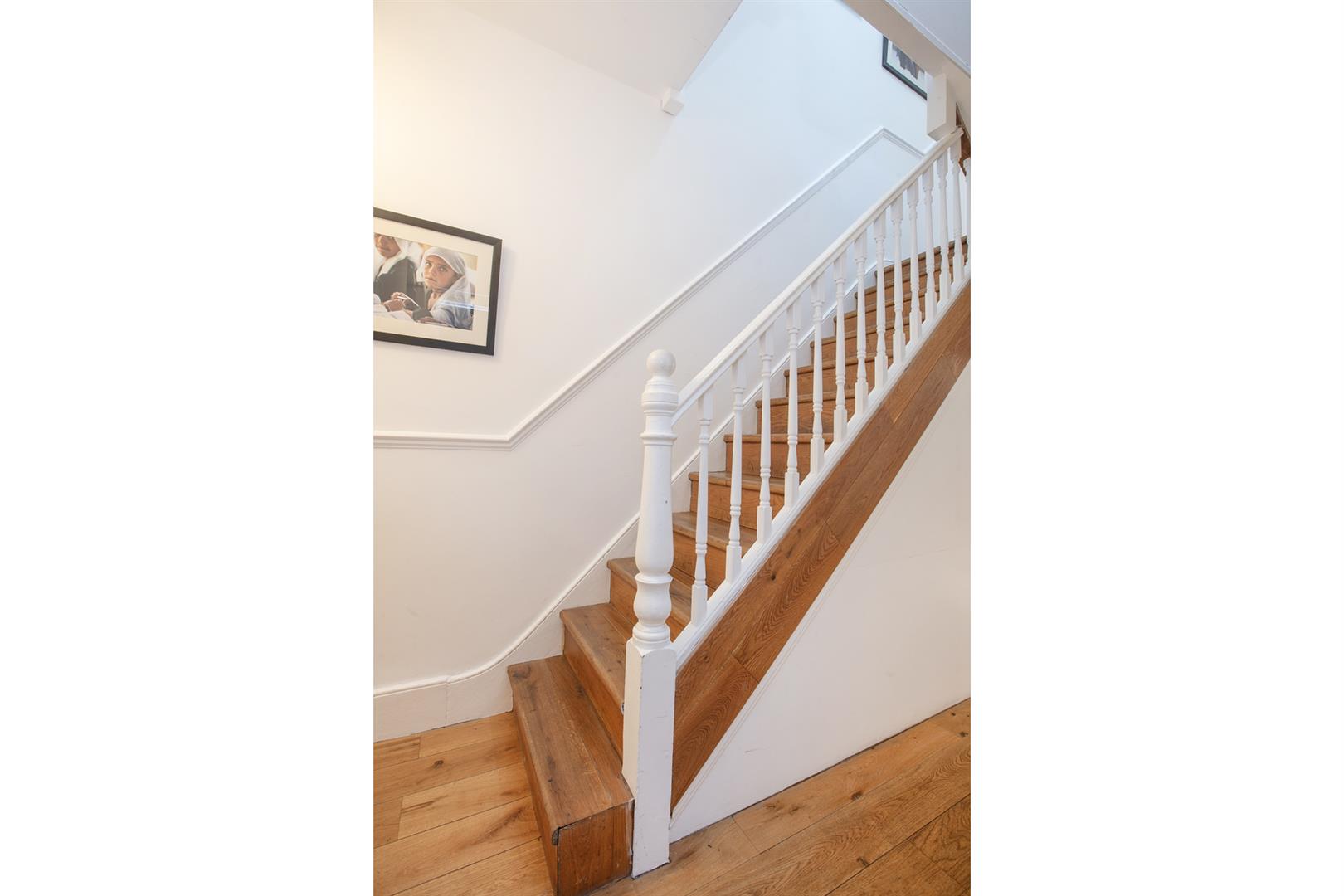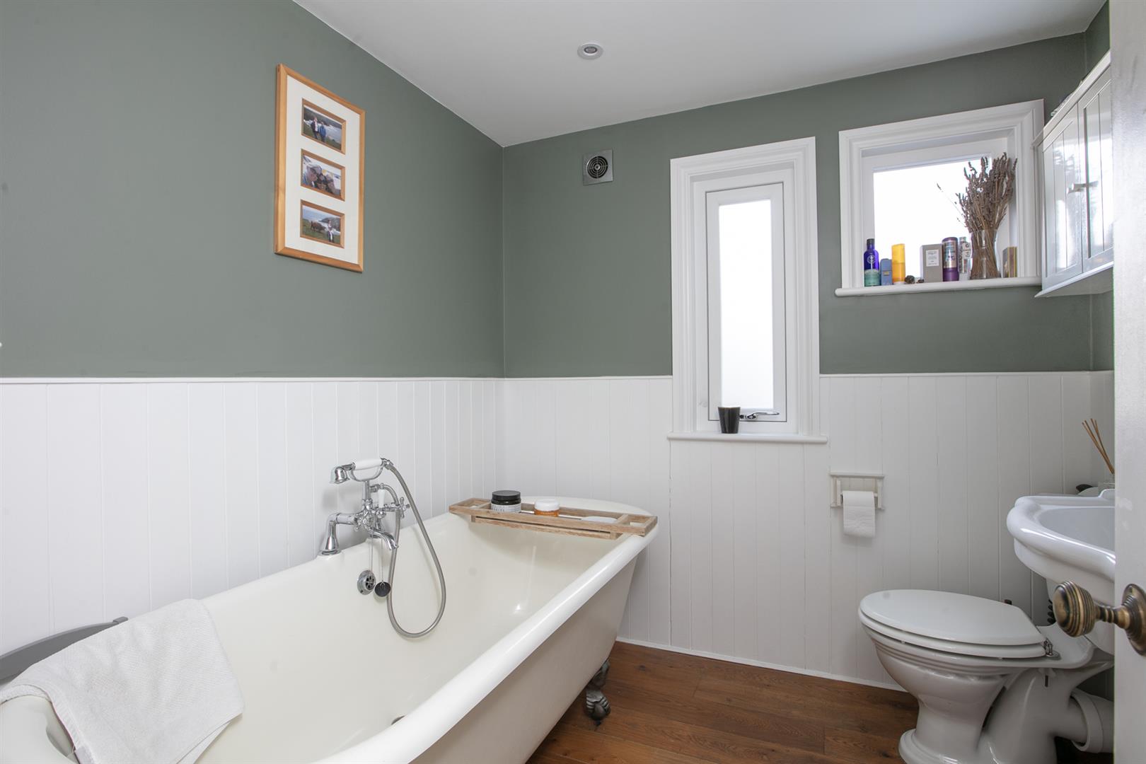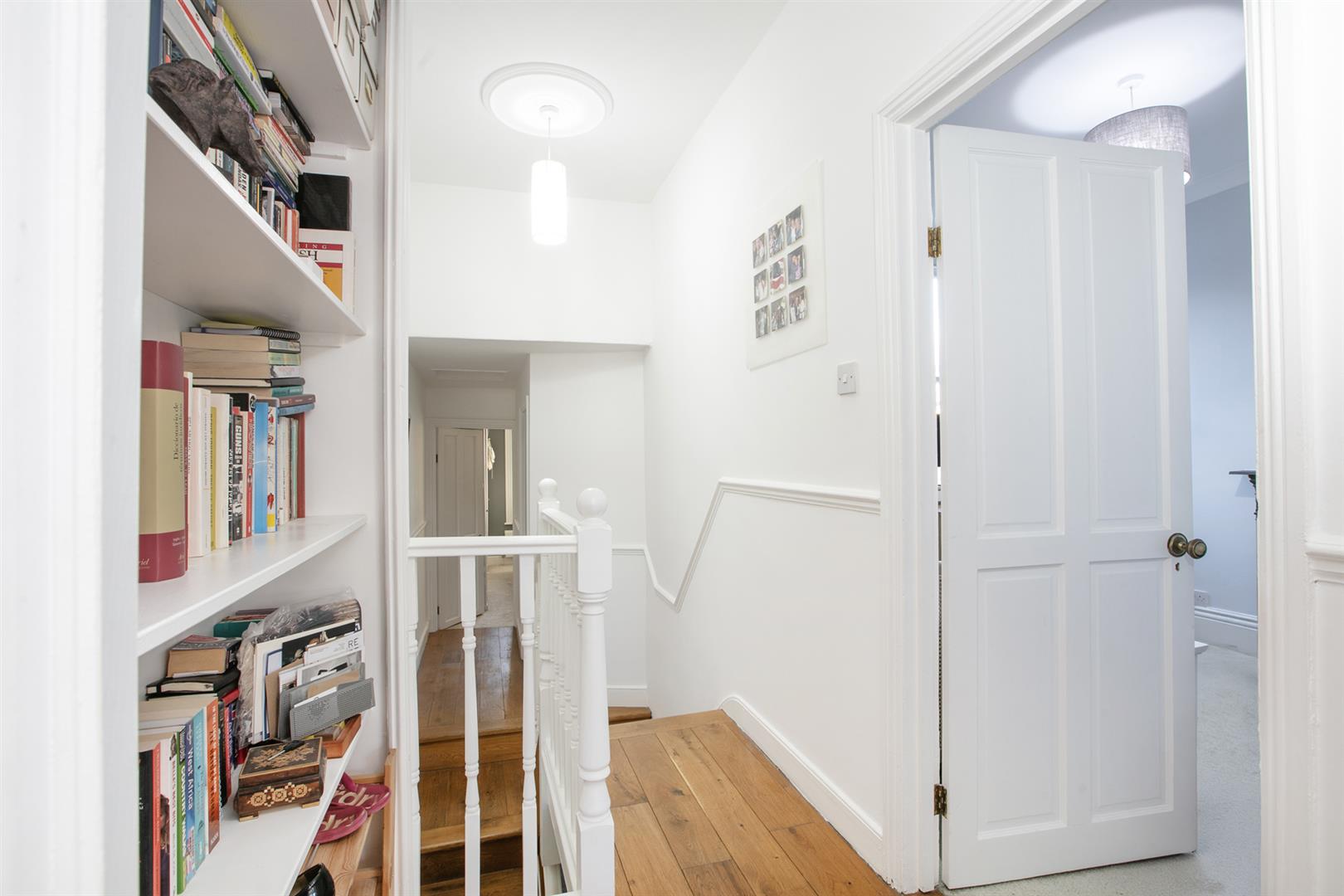 Upward to the first return you meet a wonderful rear facing double bedroom with fitted storage, plantation shutters and dishy grey walls. The family bathroom neighbours this offering a roll top freestanding bath, period style suite and gorgeous wooden panelling to dado level. The stairs boasts delightful wooden treads and risers to add to the charm. The upper landing has fitted shelving. This precedes bedroom two which is another lovely double with fitted storage and a dainty period feature fireplace. The master bedroom fronts the street through the bay with has yet more fitted storage and plantation shutters.