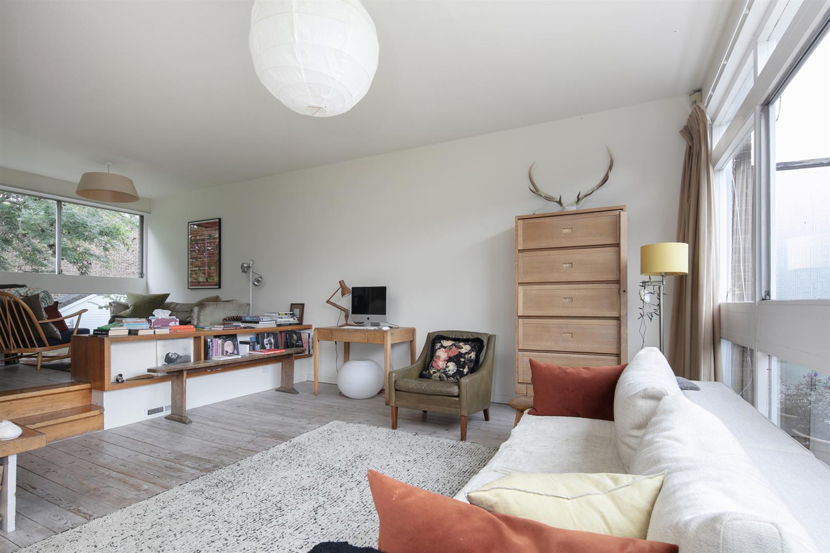 Heading upward from the landing you'll note a striking original staircase with open risers. This leads directly to a magnificent full-width first floor living space which enjoys an airy aspect to front and rear. Access is offered to a front-facing balcony from whence you can enjoy the amiable communal spaces below. A neat study adjoins to the rear. The top floor has some fab eclectic wooden panelling on the landing as well as a skylight for extra light. Three well appointed bedroom each enjoy a bright disposition - two further benefit from recessed storage. A contemporary bathroom completes the tour nicely.