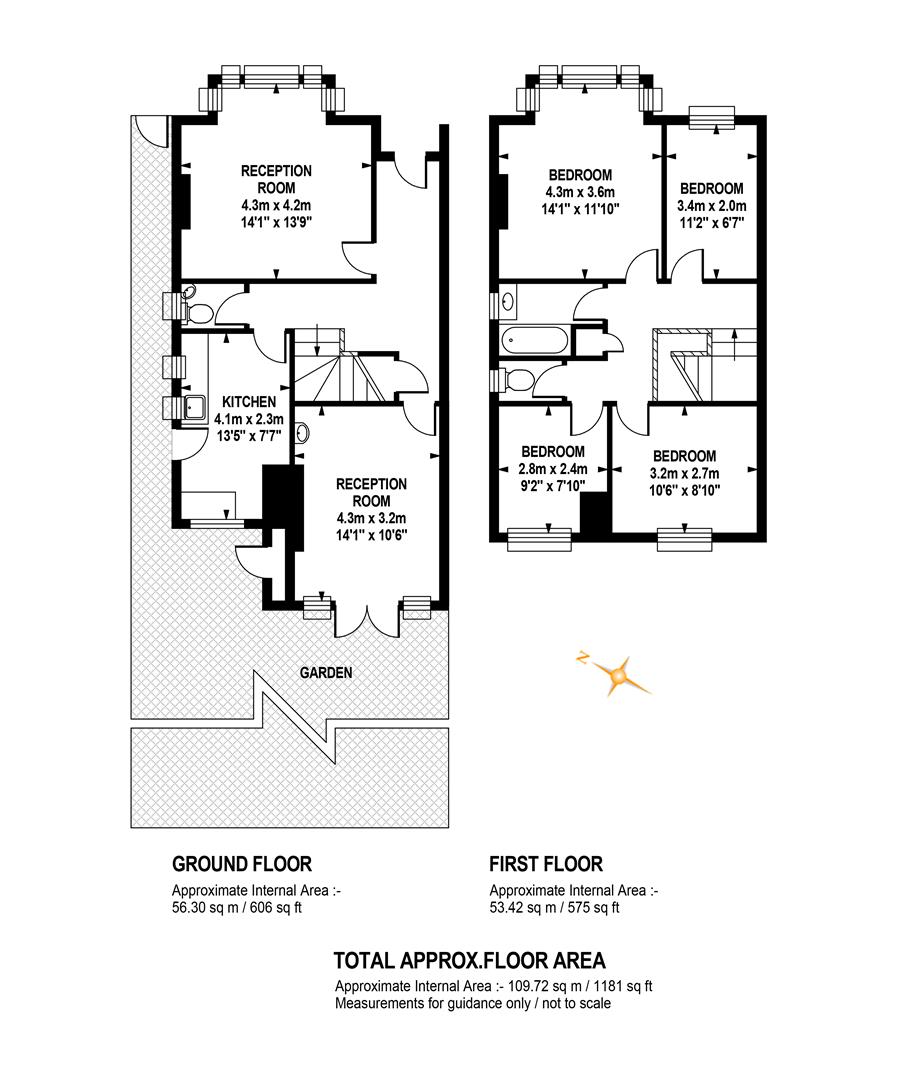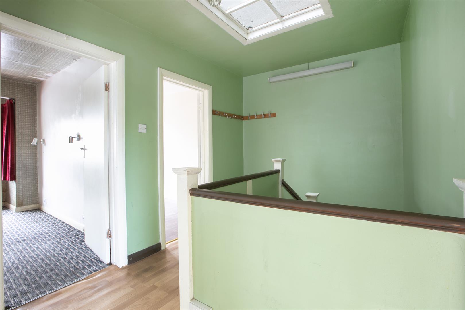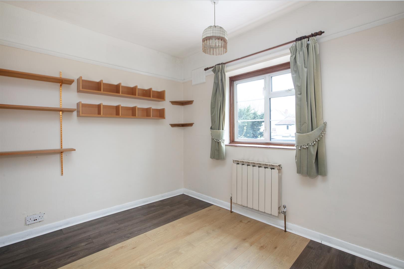 Back inside head upward to the landing where a large frosted skylight over the landing steals light from the loft space. The wonderful proportioned principle bedroom fronts the street into that wide bay window. It's a large pleasant double. A large single shares the front spot. To the rear of the landing you find another lovely double room - this time with picture rails and views down the peaceful garden. Another large single room benefits from the same vista. The wc sits separate to the bathroom which boasts floral tiling and the pinnacle of 1980's chic - a blue bath and matching sink.