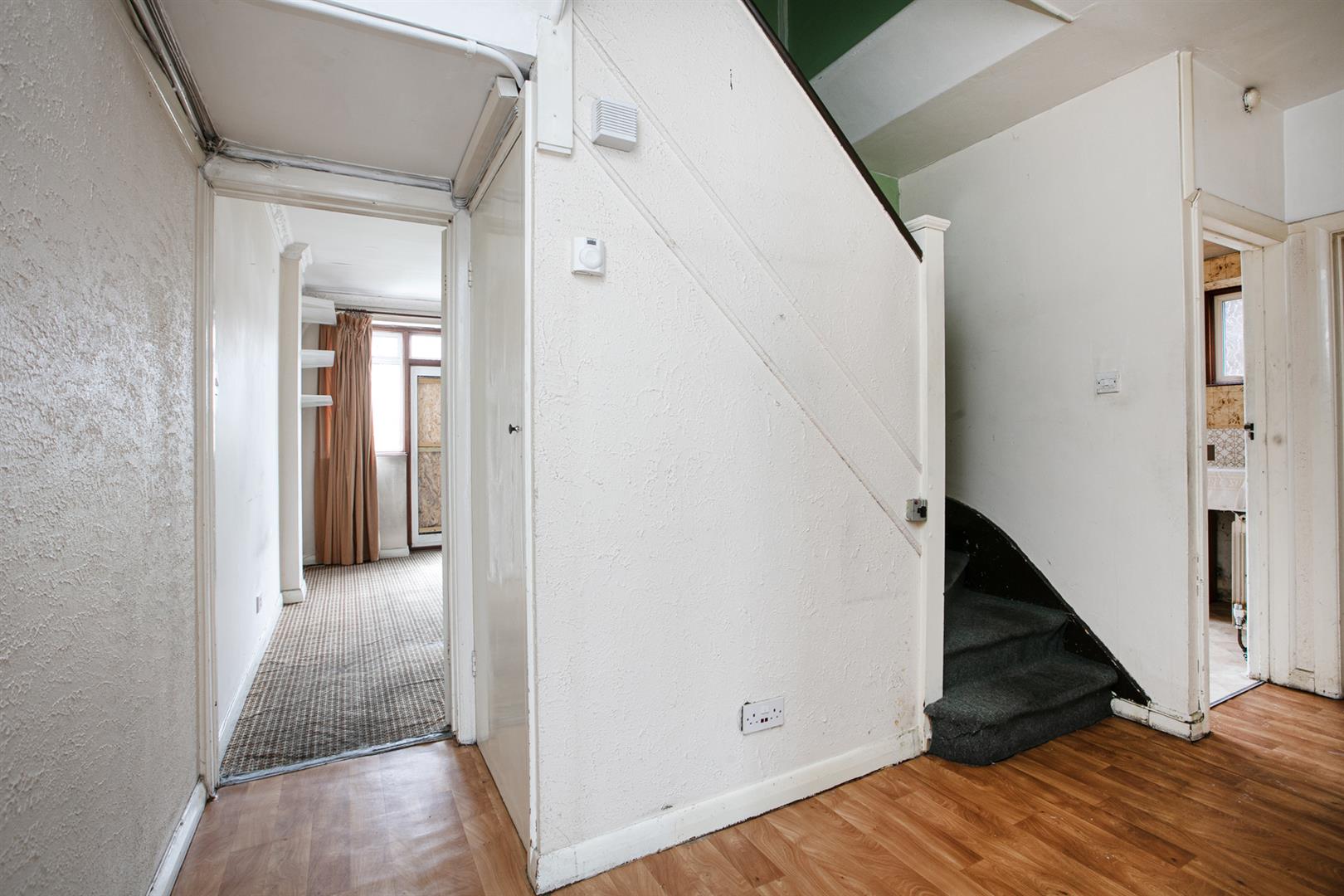 The hall is wide and leads initially to your front-facing reception where a tiled feature mantel and picture rails show the house's original charm. A wide bay supplies five separate windows for light and airiness. The second reception sits to the end of the hall with a lovely brick mantel and double doors opening to a patio. Off the hall you also find understairs storage, guest WC and a kitchen leading outside, which includes a small attached outdoor larder storage. Stretching 20 metres and with an abundant crop of dainty bluebells, the garden supplies a super generous spot for rest and relaxation. A handy side access point is great for bikes, bins and mucky kids.