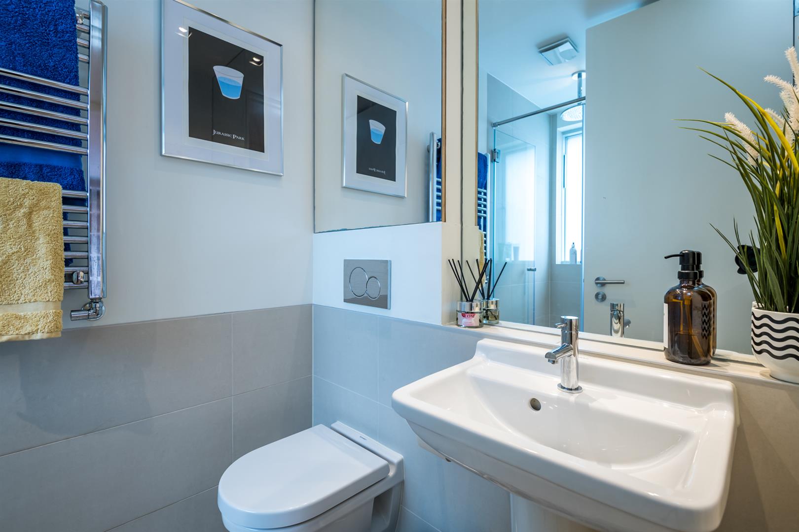 The property is tucked away from traffic behind a mature and well maintained green space. An off-street parking space and charging point are a serious benefit. Your inner hall enjoys plenty of perfectly executed storage points and a shower room immediately on your left. The first of your well proportioned double bedroom sits opposite. At the end of the hall you enter that splendid open plan living area which spans the full width of the building to the rear. A wall of sliding glass doors frames your garden view perfectly. The surrounding Georgian ambience adds to the charm.
