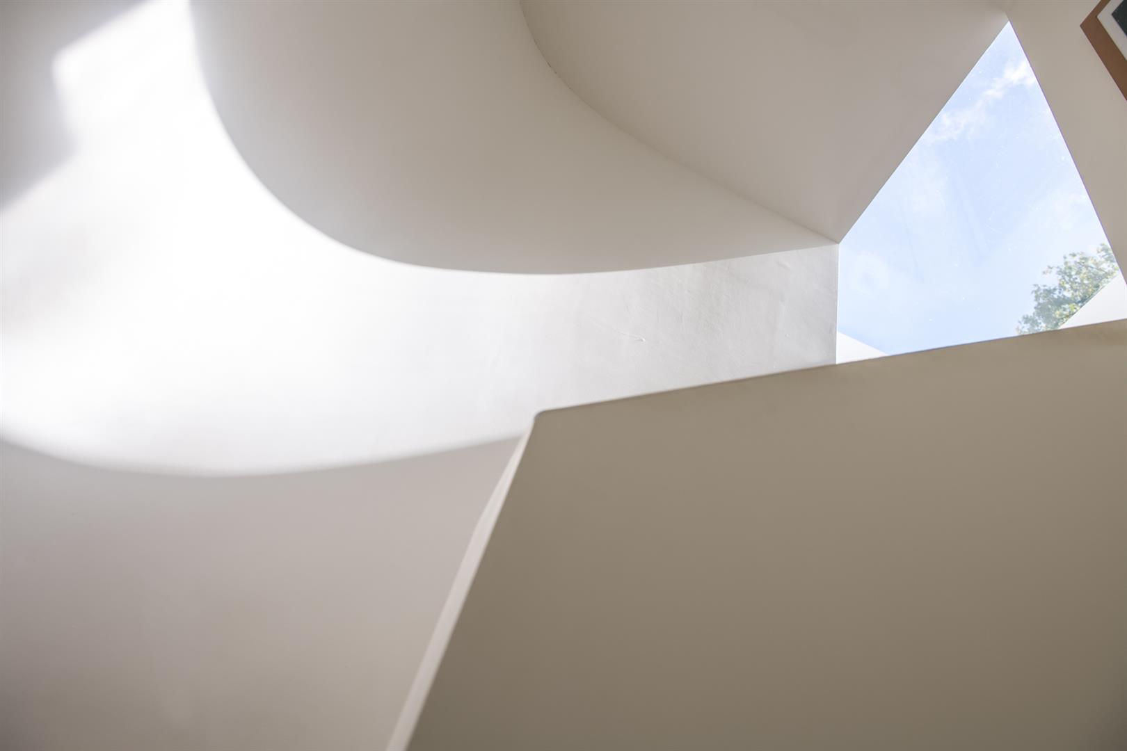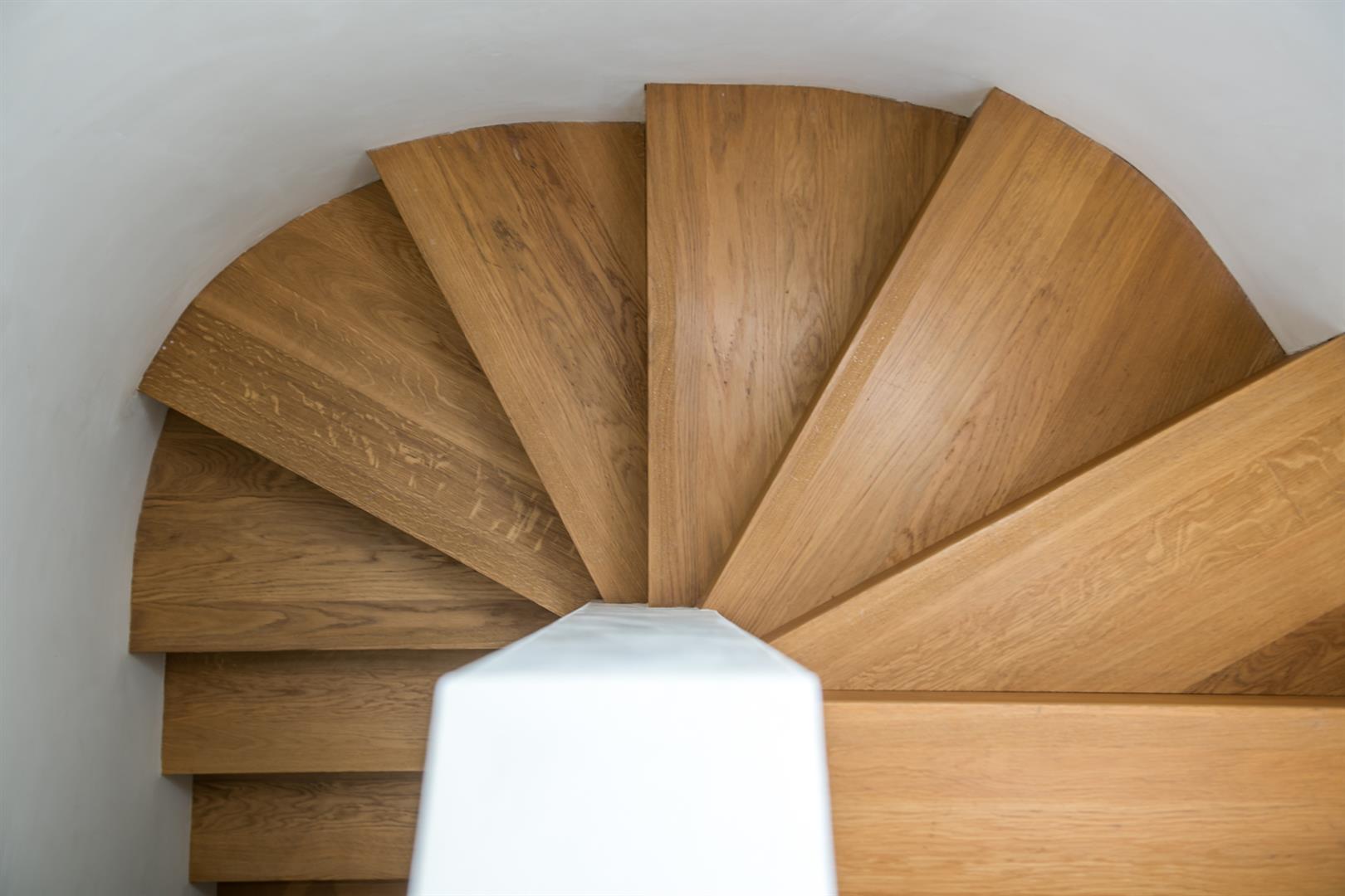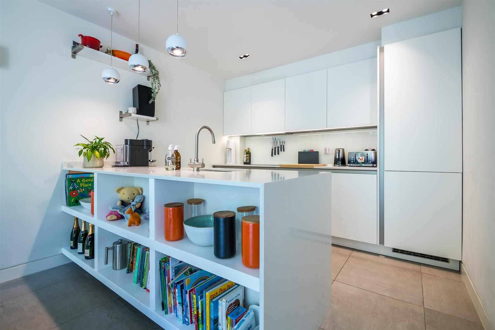 Your super slick kitchen runs on the far wall boasting composite counters atop plentiful cabinet space. A large island allows for abundant dicing and slicing space. Appliances include four ring induction hob and integrated dishwasher and fridge/freezer. The feature lights are a really nice touch. There's a handy laundry cupboard back over by the hall. Ascending your stunning circular staircase (with solid wooden treads and risers) you reach an insatiably bright and airy landing with huge overhead skylight. The main bathroom fronts the street with both bath and wet room style shower area. Both bedrooms face rear over the garden with further large, silver framed sliding windows and pretty period views. The master room has an en suite shower room and there's more fitted storage in both bedrooms.
