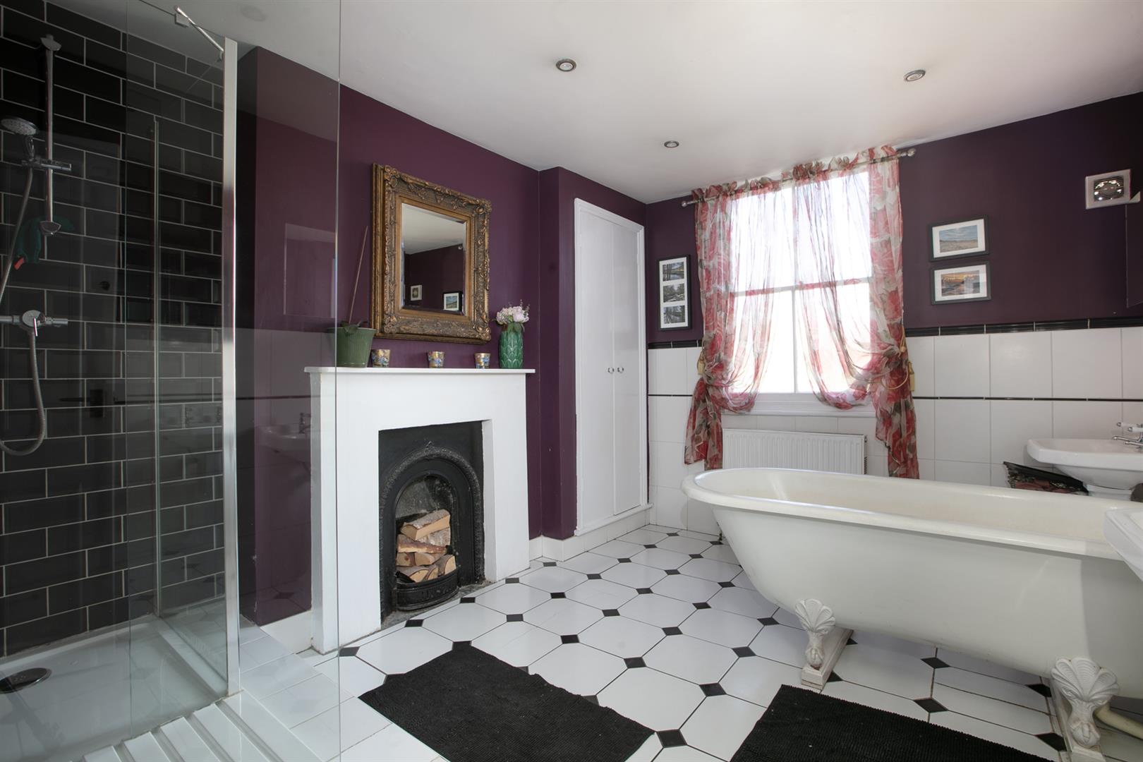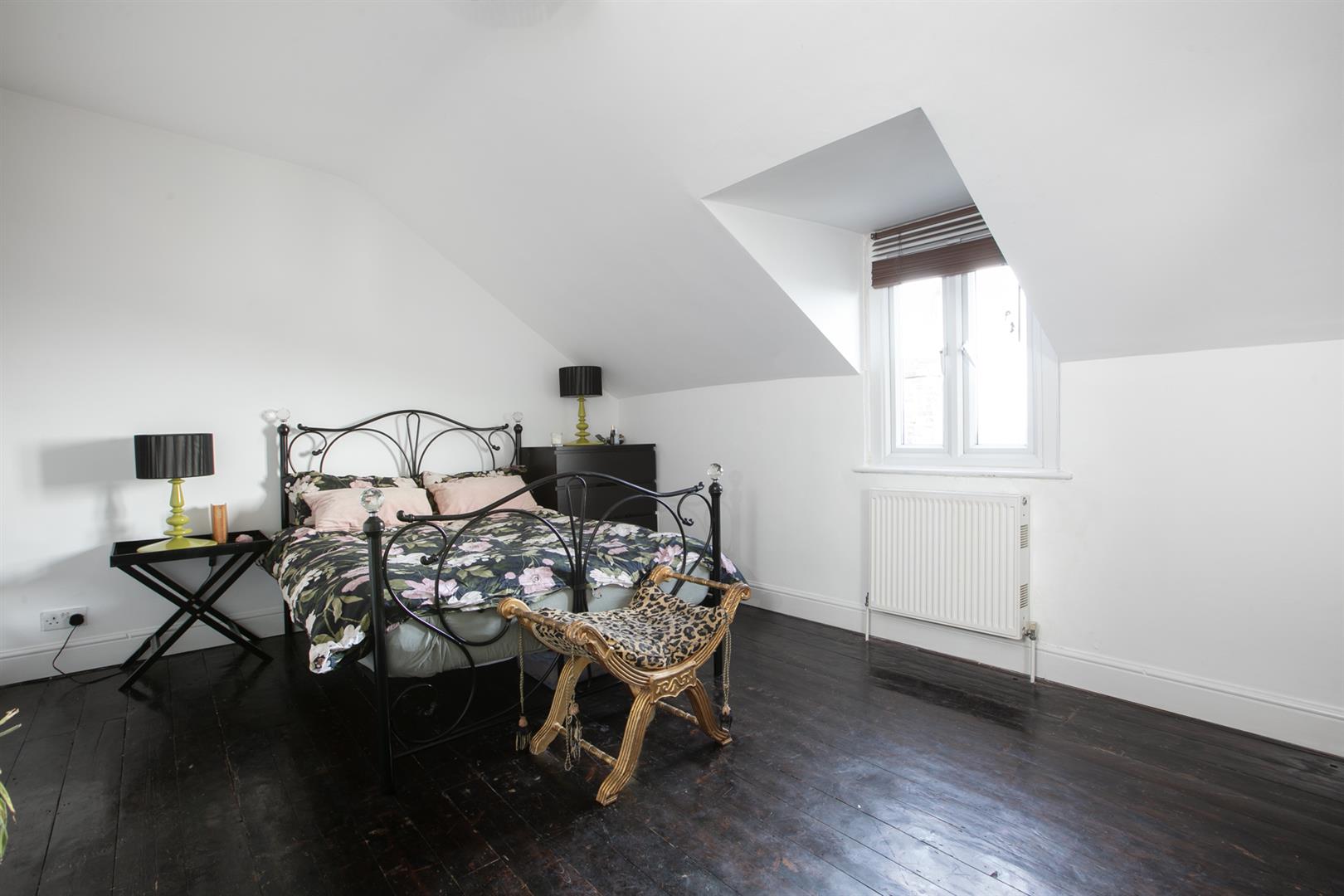 The family bathroom sits pretty on the first return. Enjoying both freestanding bath and walk-in shower, the space has more astute styling, storage, twin wash hand basins and a feature fireplace. The wall shades are vibrant and rich. Two marvellous double bedrooms, both with recessed storage, take the lion's share of the first floor. The front room steals the full width of the building and has a triptych of front-facing windows. The rear bedroom has a splash of rich pink and there's another wc off the landing. Upward again to the second floor you find two more overtly generous double bedrooms. Both have gently sloping eaves and lofty aspects. You'll also enjoy those fab city views stretching as far as Canary Wharf!