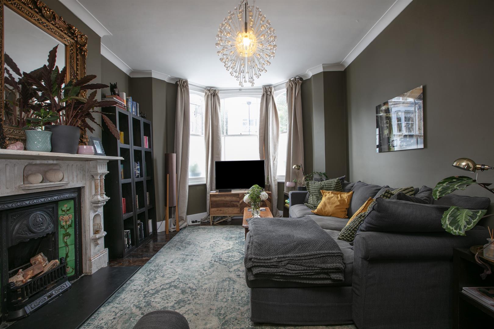 The exterior sets the perfect first impression with handsome paintwork, walled garden, gate and pretty tiled path. A long and lovely entrance hall invites you inward with ceiling arch, dado rails and dusky blue walls. Beautifully stained original floorboards continue through to the decidedly generous double reception which has a bay window to the front and a further sash window peering toward the garden. Two sublime fireplaces, each with ornate detail and elegant tiling grace the space. There's ample room for lounging and formal dining and wonderful high ceilings. Toward the rear of the L-shaped hall, past a handy wc and garden access, lies the contemporary kitchen where modern cabinets and counters compliment the dishy tiled floor. There's a four ring hob, double oven, dishwasher, breakfast bar and space for an American-style fridge/freezer. The garden enjoys abundant leafiness and space for sun-baking, barbequing and vino sipping. Moving to the lower ground floor, you find the first of your double bedrooms. Currently laid out as a working office, the space enjoys views over the garden and plenty of storage. There is further storage on the lower landing.
