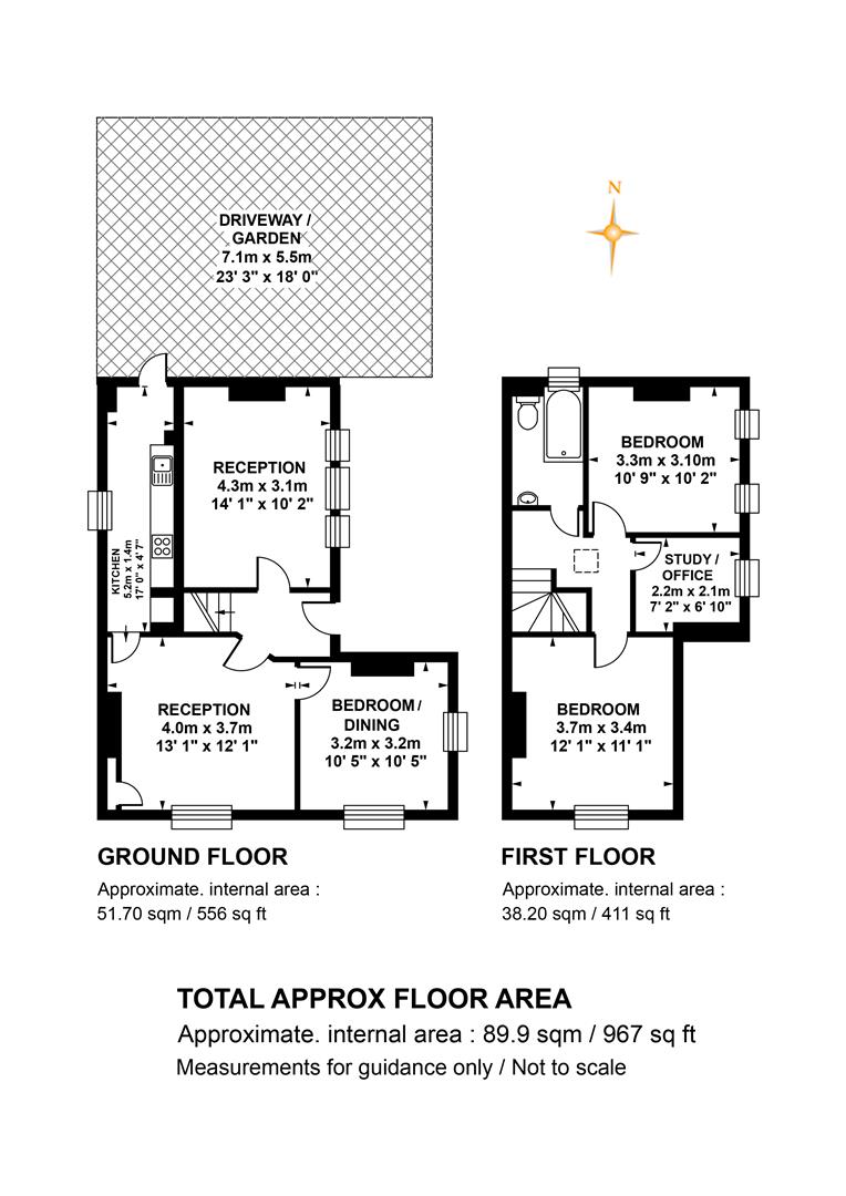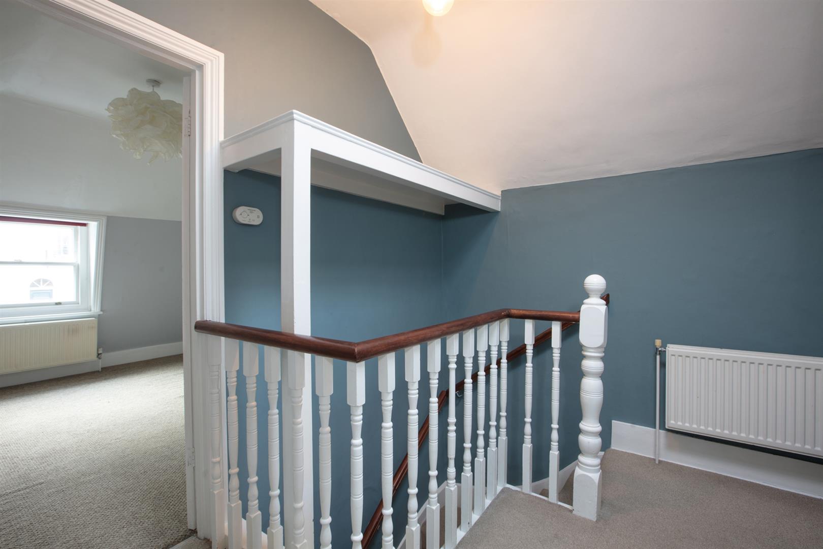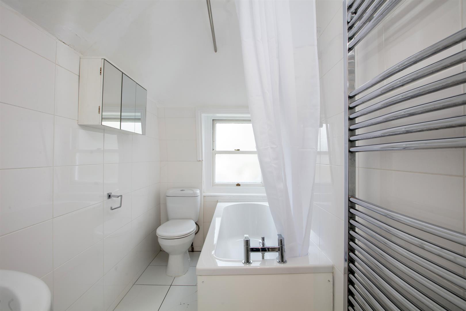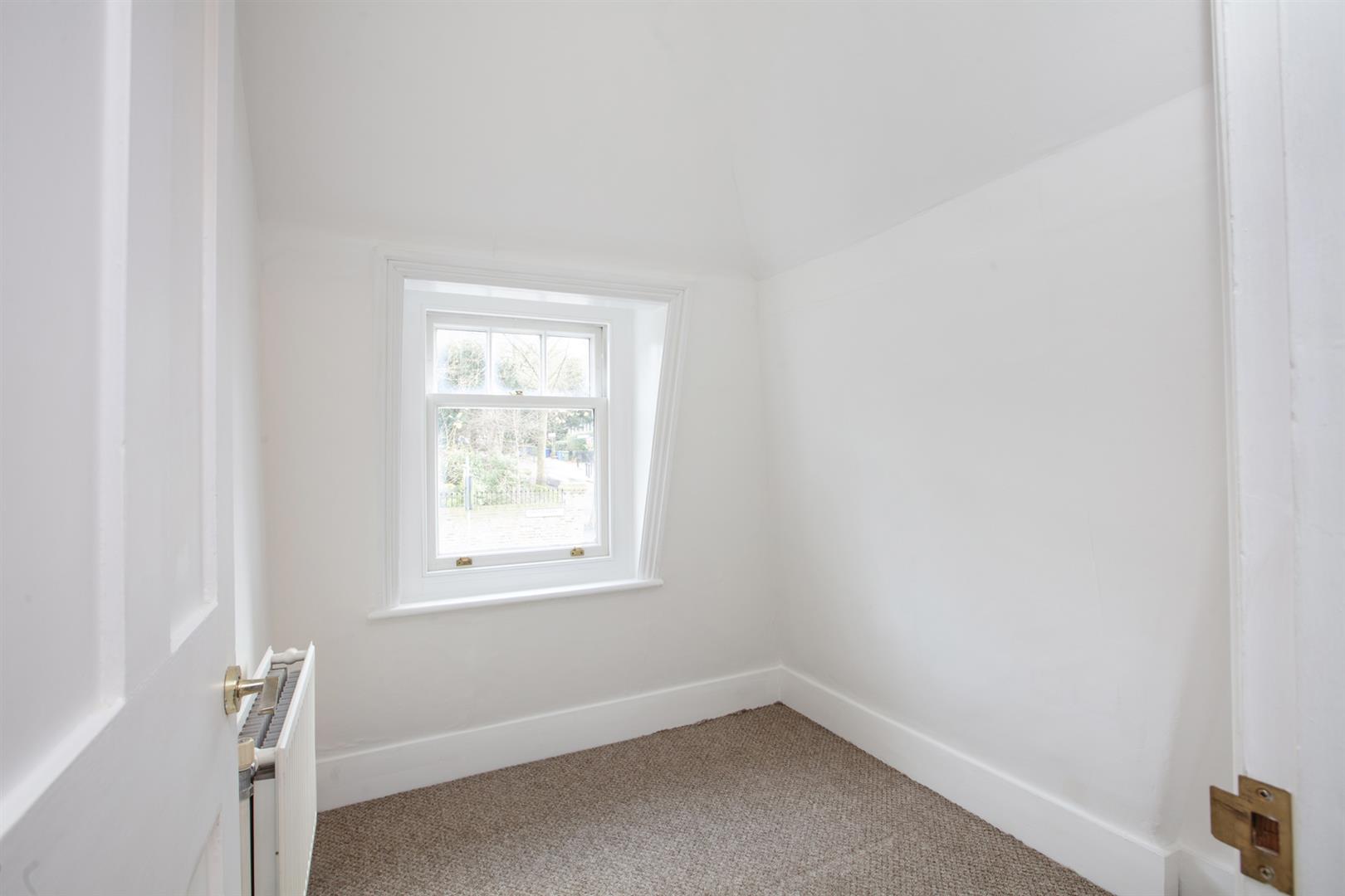 Upstairs you find a pretty landing with raised storage. The master bedroom has a pretty duo of sash windows and fairytale sloping eaves. These continue into a further double bedroom which has a dainty feature fireplace. The single room in between will make a fine nursery or study. The fully tiled bathroom completes your tour with a pristine white suite, frosted sash window and heated towel rail.