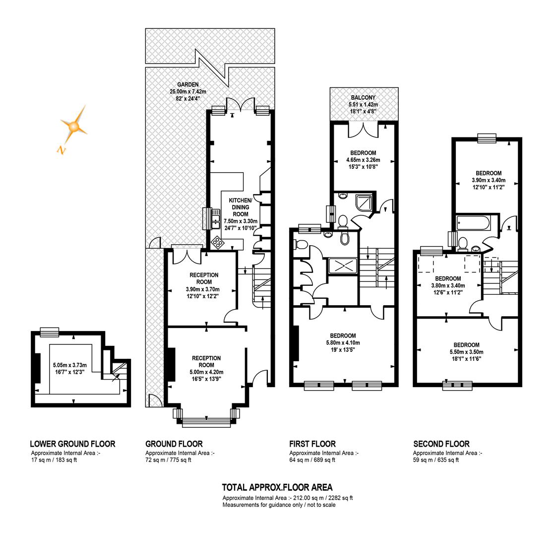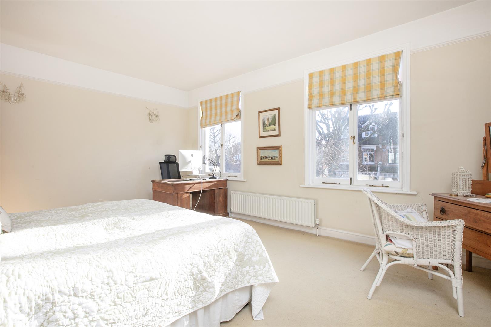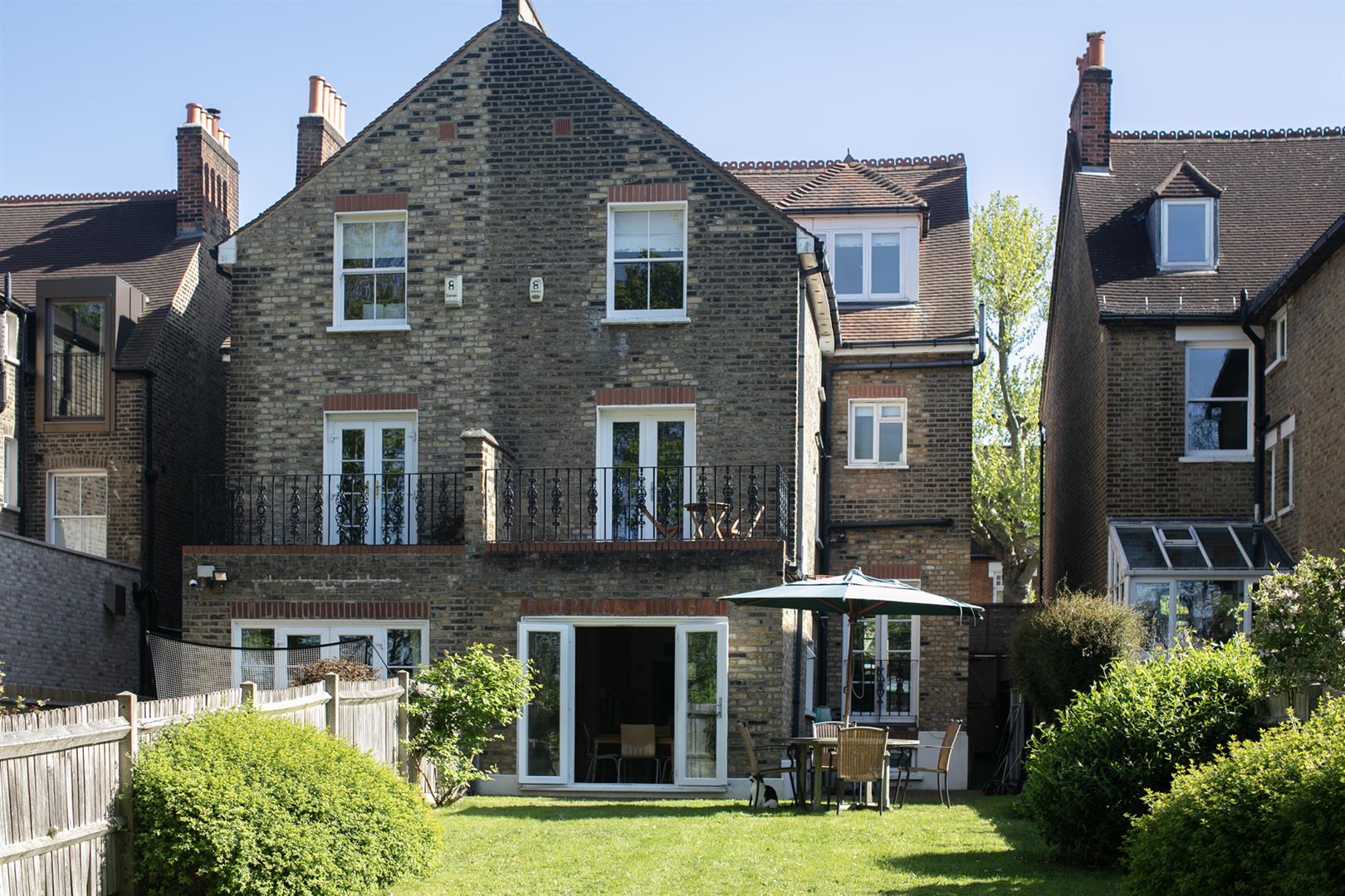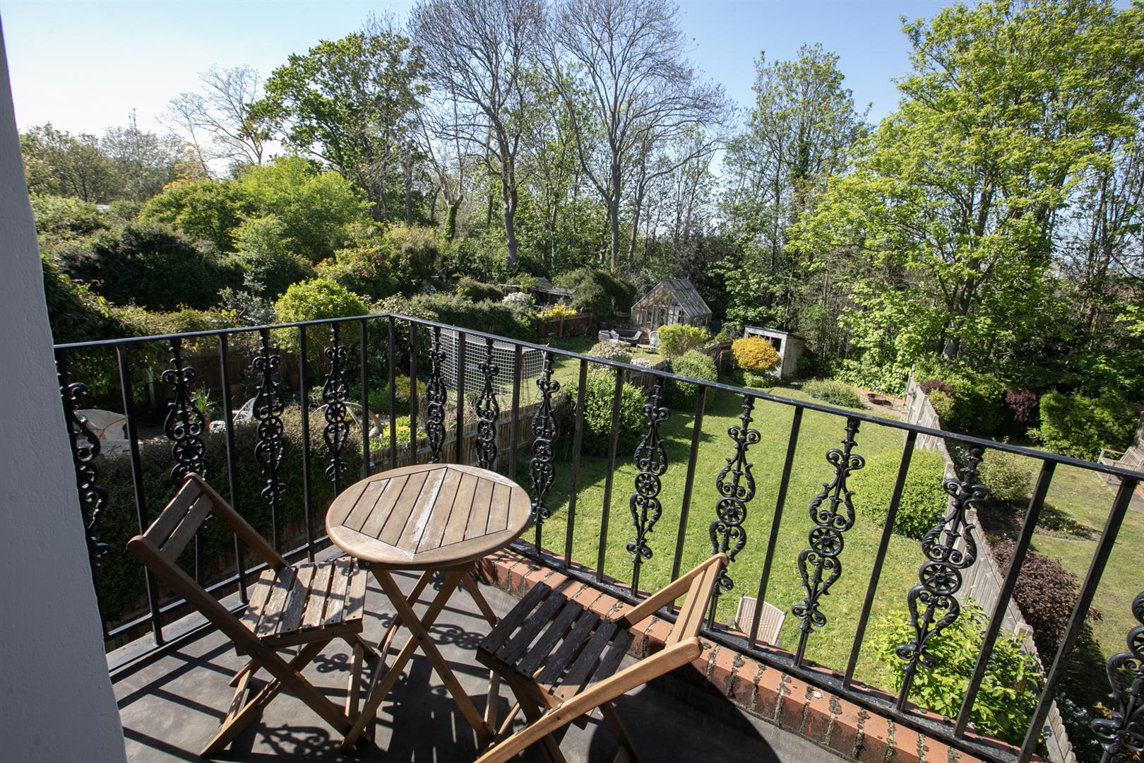 Upward bound you meet a spacious return with a lovely rear-facing double bedroom. French doors open to that fabulous balcony from whence you can enjoy the best views down the garden. A shower room sits next door, making it the perfect spot for guests. Upward again to the first floor you meet a bright and bold front-facing master suite with adjoining dressing area and ensuite shower room. Bedroom three faces rear on the upper return next to a neat family bathroom. Bedrooms four and five sit on the second floor.