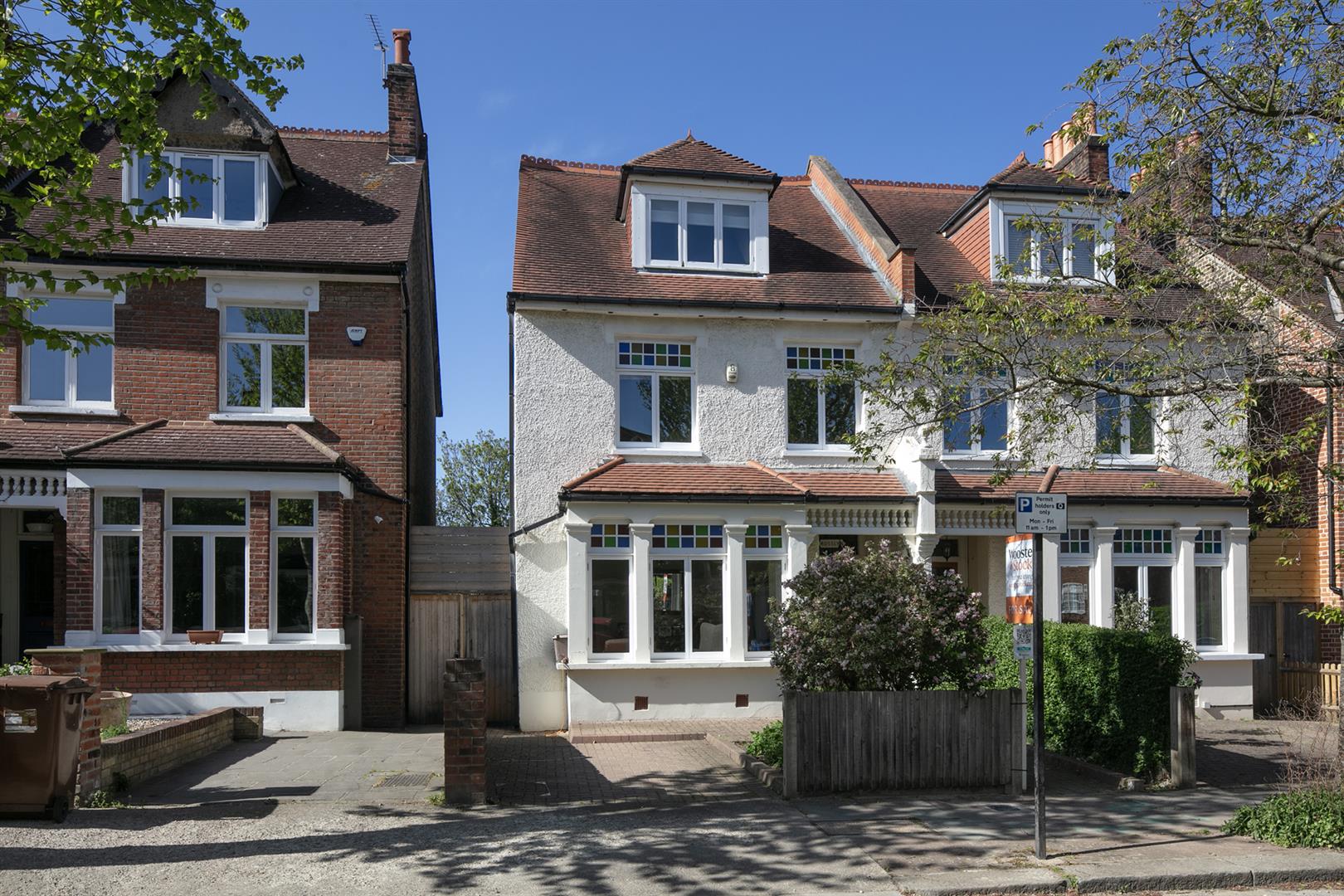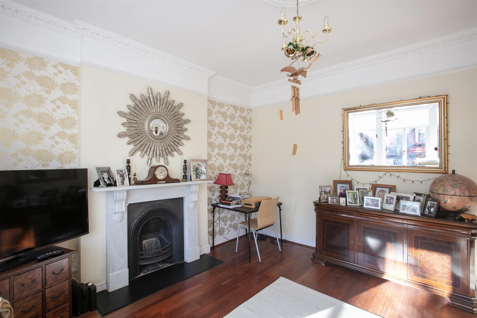 The house sits on the quietest corner of Grove Park and sits back from the road behind a mature front garden. The parking space will comfortably house a large SUV and there's a handy side access point. An original door with stunning original stained glass detail bears the house number with 'Rosslyn' proudly above. Inside you meet decorative cornicing and high ceilings. To the right you find the first of your reception rooms - a bright, front-facing affair with a super-wide recently refurbished bay of casement windows. Another flurry of original stained glass sits well with picture rails, cornicing and a lovely original feature fireplace.