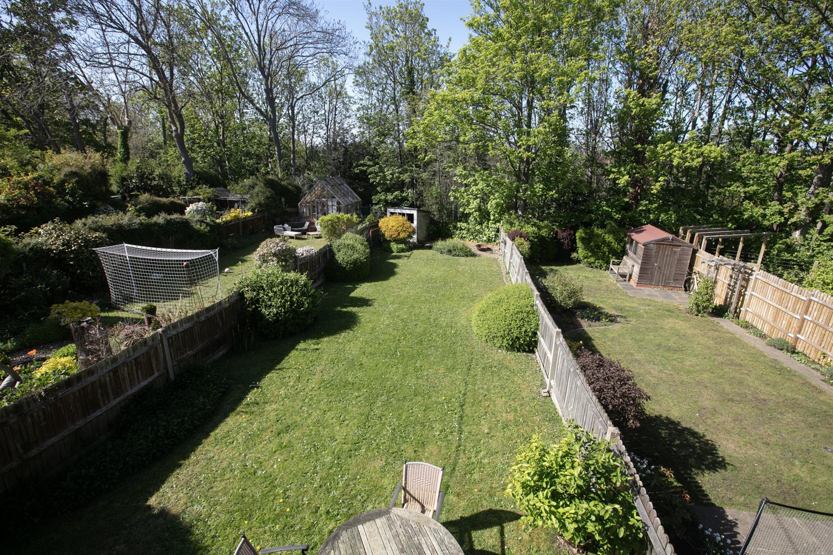 A second reception faces rear through pretty French doors which open to an elevated Juliette balcony. Picture rails, cornicing and a delightful ceiling rose continue the charm offensive. A half flight descent in the hall leads to the fantastic lower ground floor tanked utility/laundry room which will hide a million sins. The kitchen/diner stretches confidently from the rear of the entrance hall with plenty of cabinet and counter space and some rather lovely garden views. The garden itself is a sprawling leafy oasis - ideal for summer gatherings.