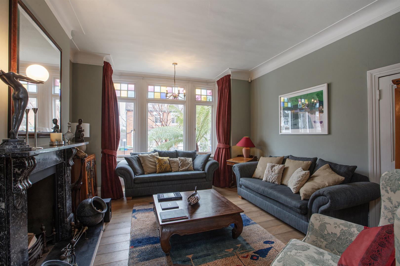 A most inviting red-bricked exterior sits high above a wonderfully landscaped front garden with off street parking and an array of mature plants and shrubs. An exquisite front door with original stained glass opens inward. The inner hall enjoys notably high ceilings and original decorative corbels. To the right you find an impressive double reception with twin marble mantels. Both fireplaces are working. A proud front square bay enjoys more charming original stained glass. French doors to the rear open to a paved courtyard which steals lovely morning sun. Further along the hall you find a guest wc opposite a handy cloakroom. There is also access to the fantastic cellar which is head height and huge!