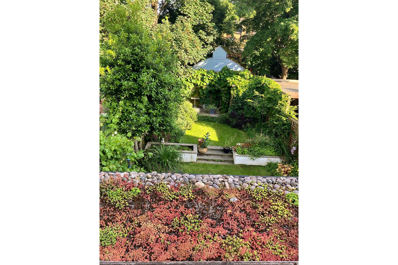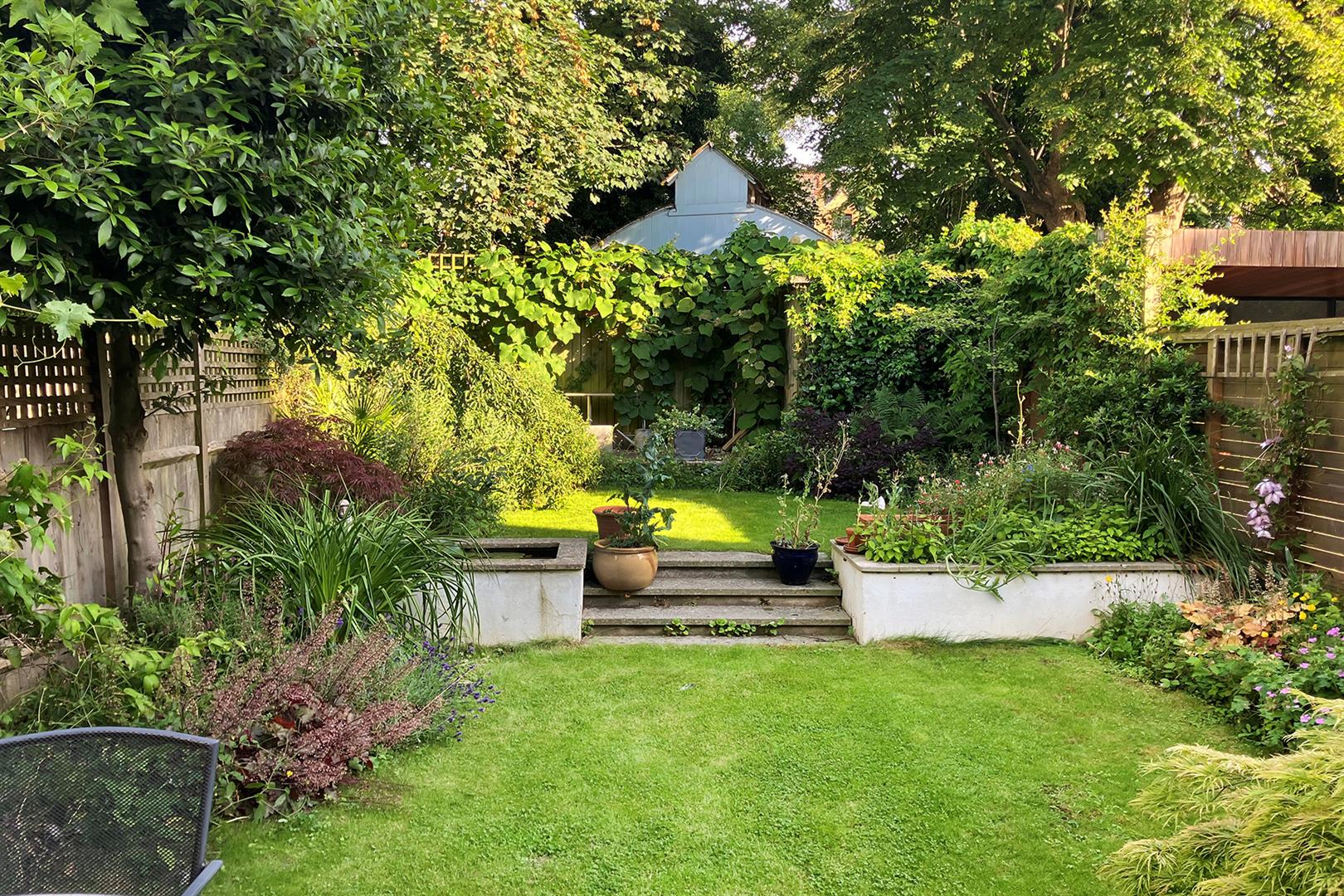 The architect-designed kitchen/diner is accessed from the end of the hall and stretches to full width at the rear to accommodate up to 20 people for dinner! The space enjoys underfloor heating, high gloss cabinets, a five ring induction hob and yummy quartz counters. These supply unbeatable dicing, slicing and spicing space and breakfast bar dining opportunities. Further appliances include a double oven, Integrated microwave, integrated fridge/freezer and dishwasher. There's some nifty pull-out bin storage, a dishy rear-facing corner window and fab bi-fold doors that open wide to the garden. This is well proportioned, split level and enjoys side gate access, LV lights on the steps, four external sockets and two taps. A shed with armoured cabling offers numerous uses.