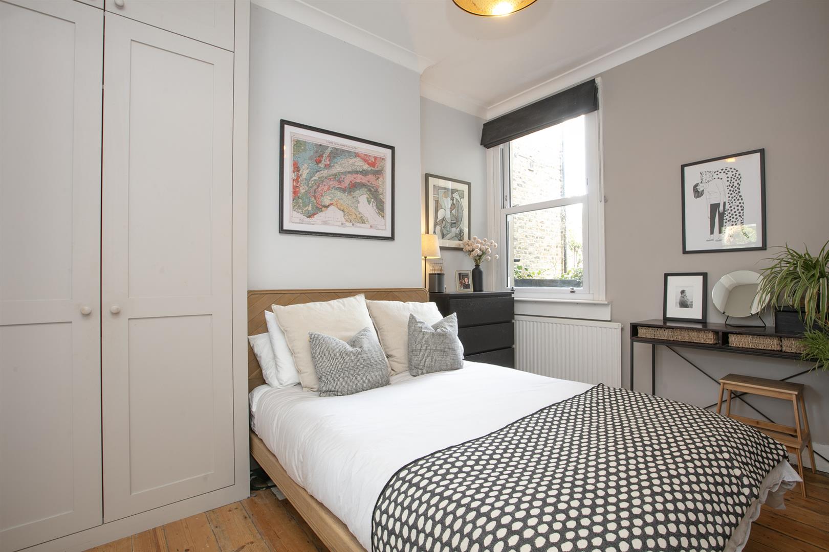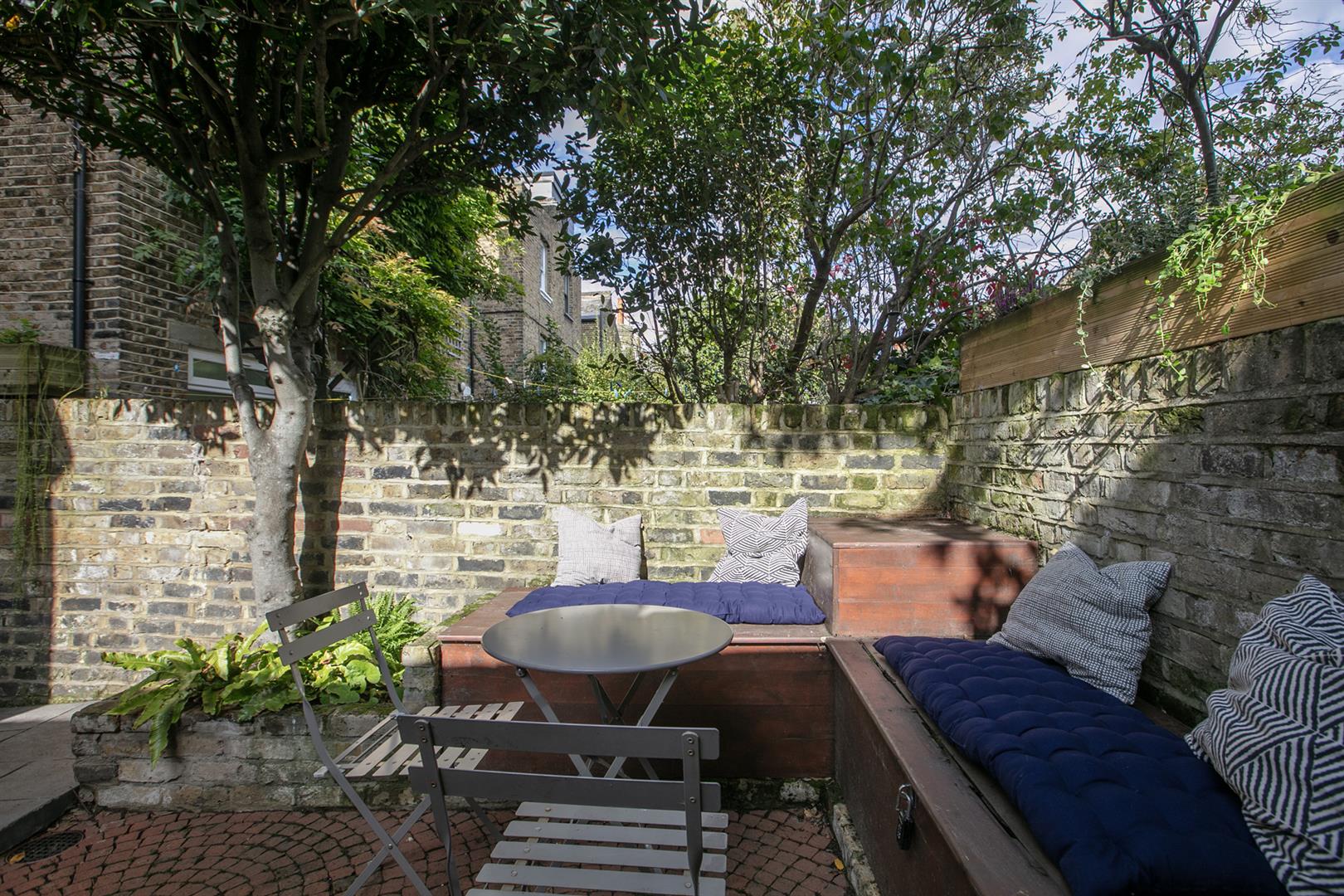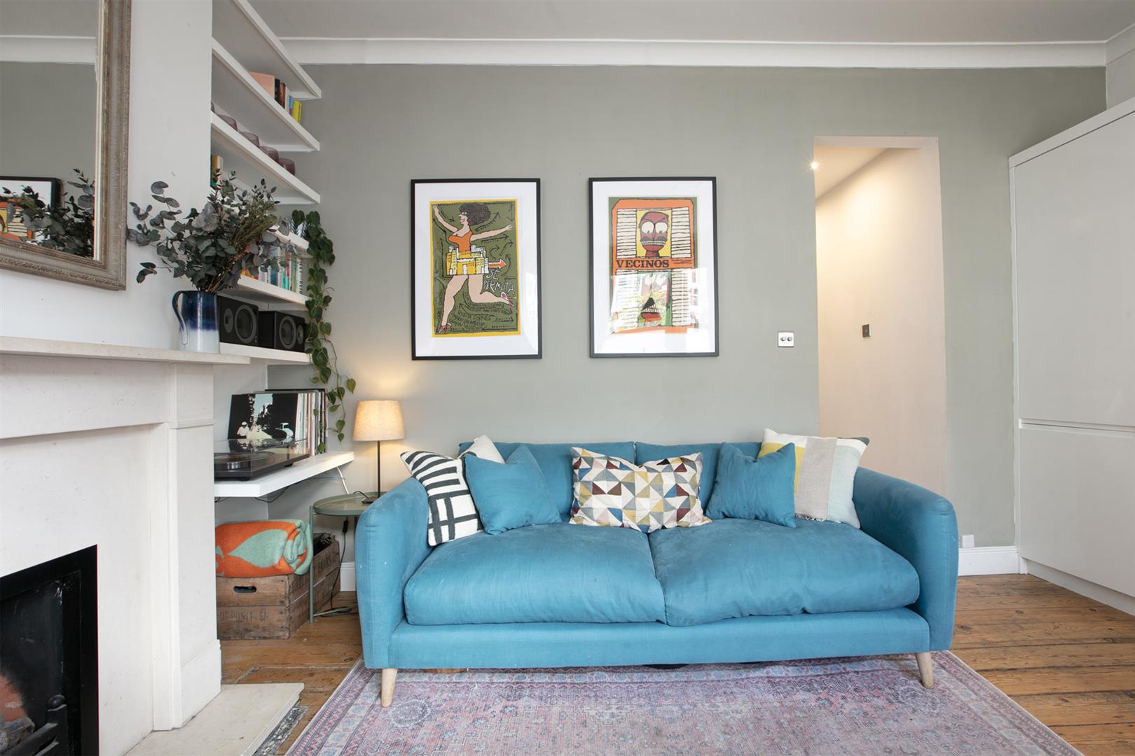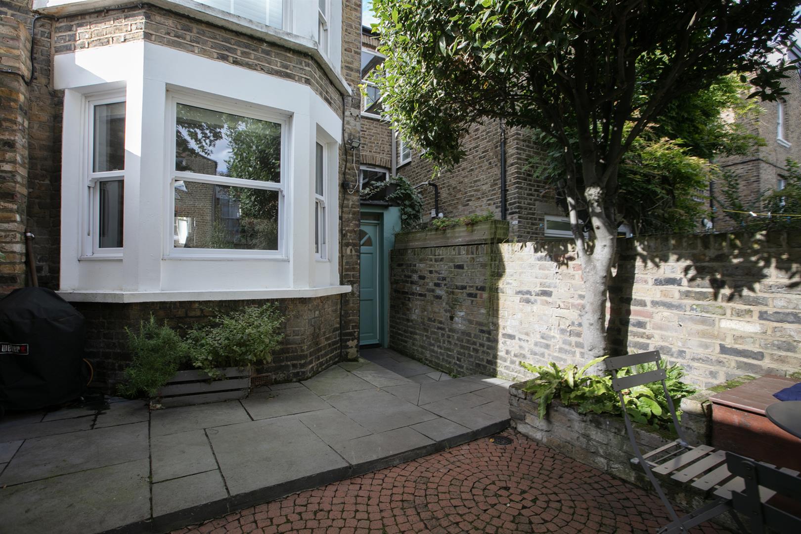 The building sits on a pleasant corner spot surrounded by similarly attractive period buildings. It's a mature, residential and popular part of south east London. Your beautifully painted teal door leads down a few steps into your private garden which enjoys some pretty planter beds and plenty of space for a BBQ come summer. The inner hall has fitted storage and leads to an inner landing. You find the first of your bedrooms facing over the garden through a wide bay window. There's plenty of shelving and space for a double bed too. A few steps down from the landing lead to a fantastic bathroom with posh white suite, lavish roll top bath and a large walk-in shower with drencher. Further fitted storage precedes this. The upper floor supplies your fabulous front-facing living room which enjoys a coal effect fire with marvellous mantel. The kitchen runs along the left wall with brand new four ring Bosch induction hob, integrated fridge freezer and integrated dishwasher. A handsome master bedroom completes the tour nicely with more stripped timber floors, high ceilings and a peaceful rear aspect.