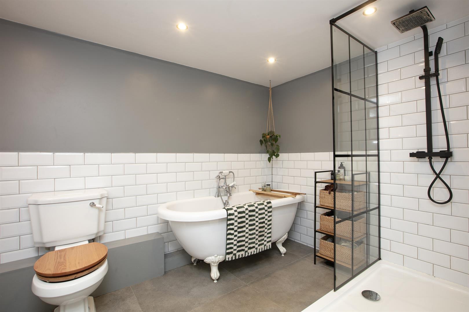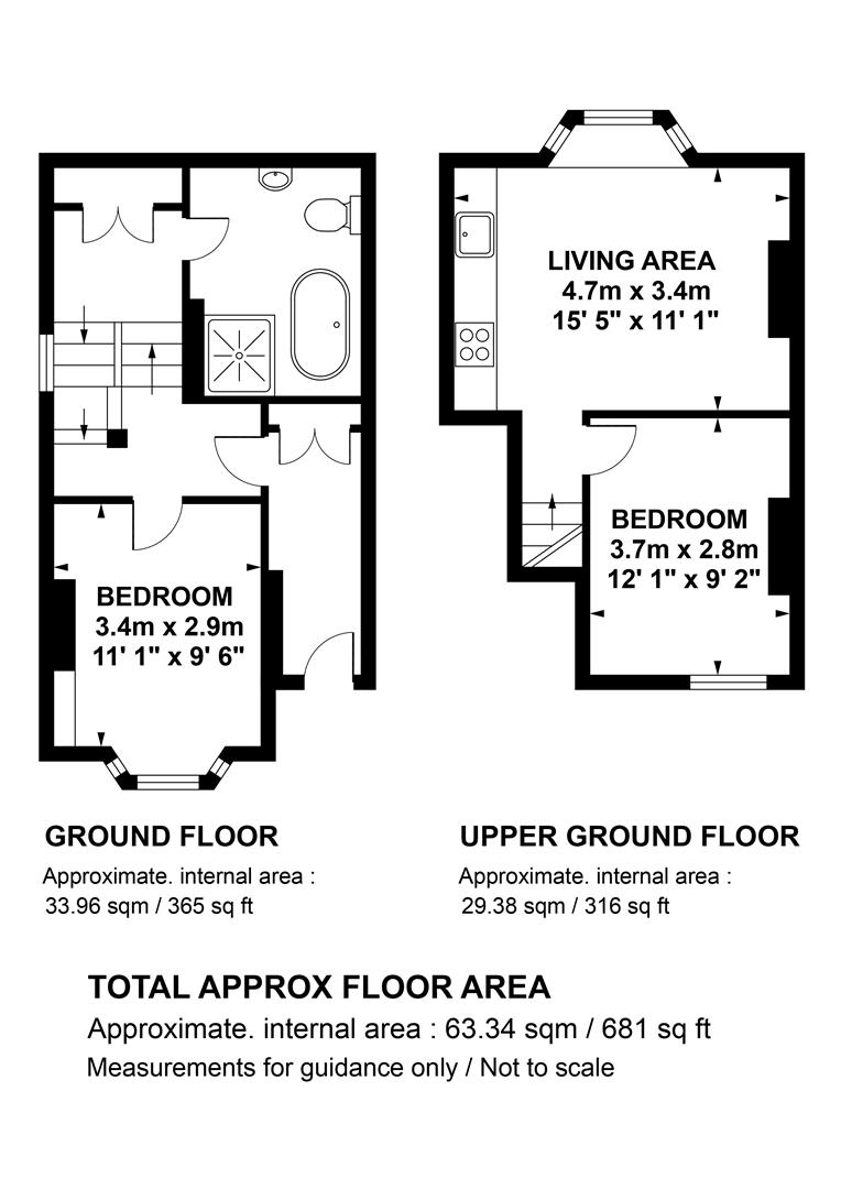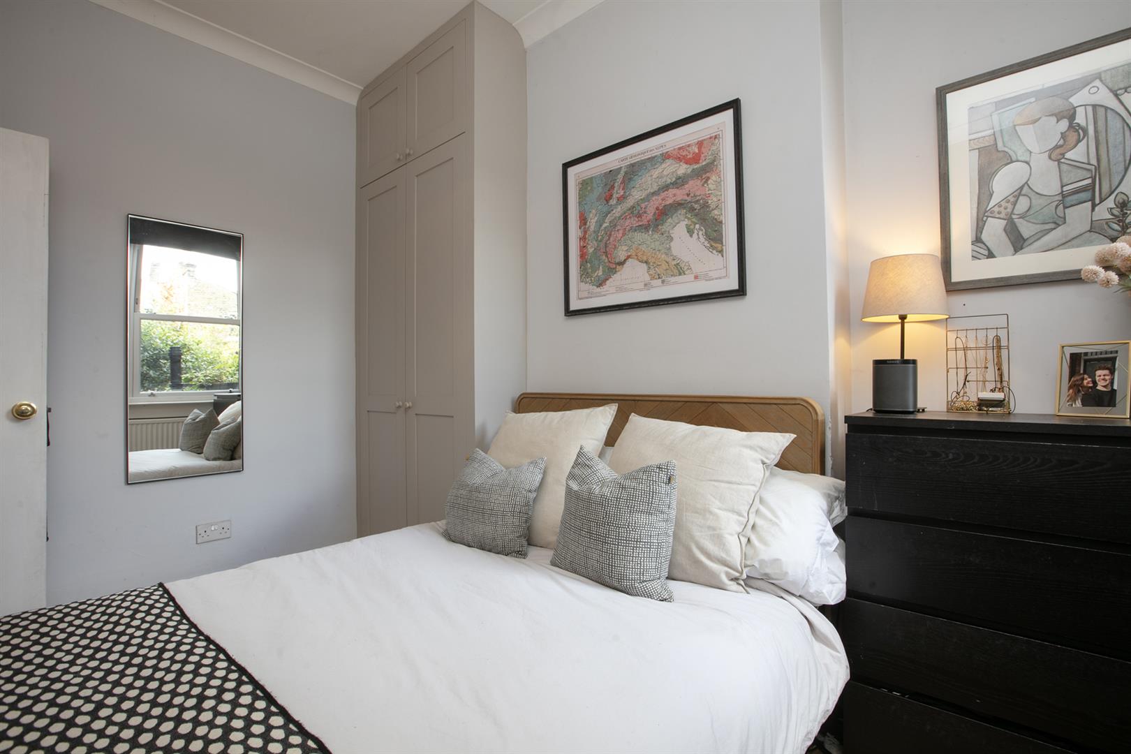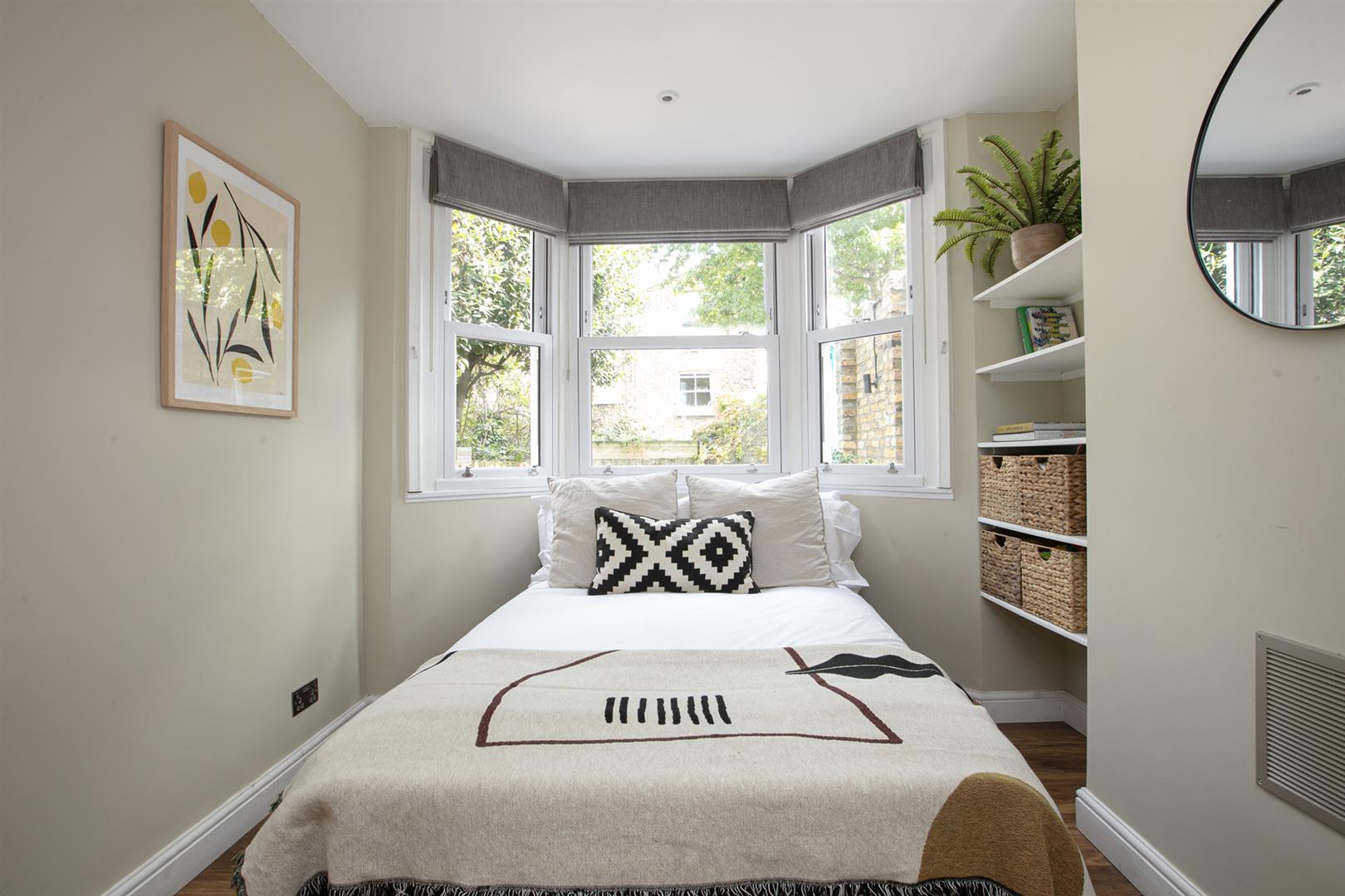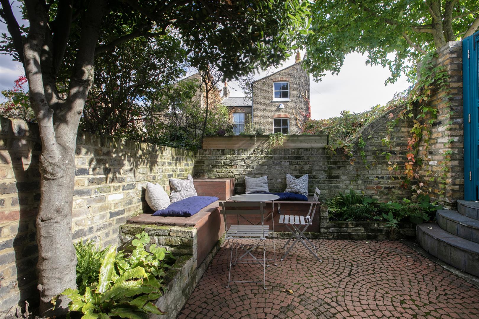 The building sits on a pleasant corner spot surrounded by similarly attractive period buildings. It's a mature, residential and popular part of south east London. Your beautifully painted teal door leads down a few steps into your private garden which enjoys some pretty planter beds and plenty of space for a BBQ come summer. The inner hall has fitted storage and leads to an inner landing. You find the first of your bedrooms facing over the garden through a wide bay window. There's plenty of shelving and space for a double bed too. A few steps down from the landing lead to a fantastic bathroom with posh white suite, lavish roll top bath and a large walk-in shower with drencher. Further fitted storage precedes this. The upper floor supplies your fabulous front-facing living room which enjoys a coal effect fire with marvellous mantel. The kitchen runs along the left wall with brand new four ring Bosch induction hob, integrated fridge freezer and integrated dishwasher. A handsome master bedroom completes the tour nicely with more stripped timber floors, high ceilings and a peaceful rear aspect.