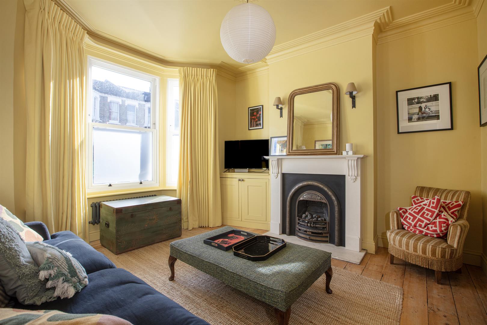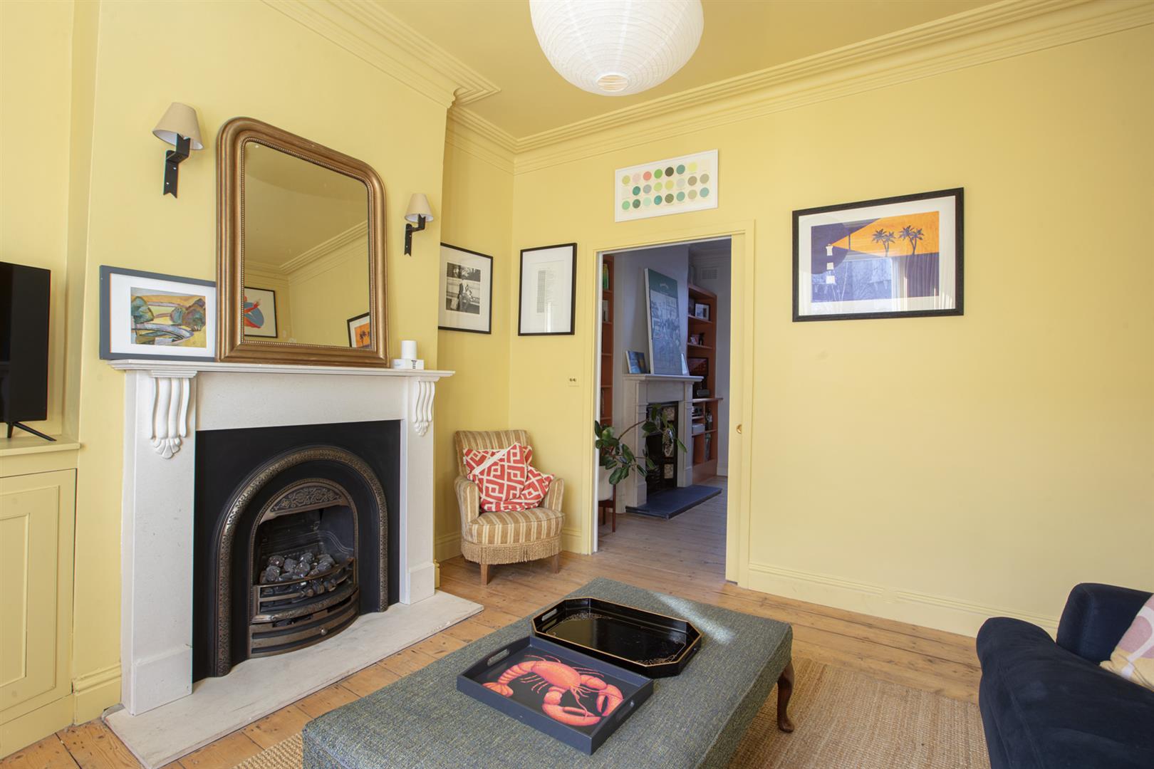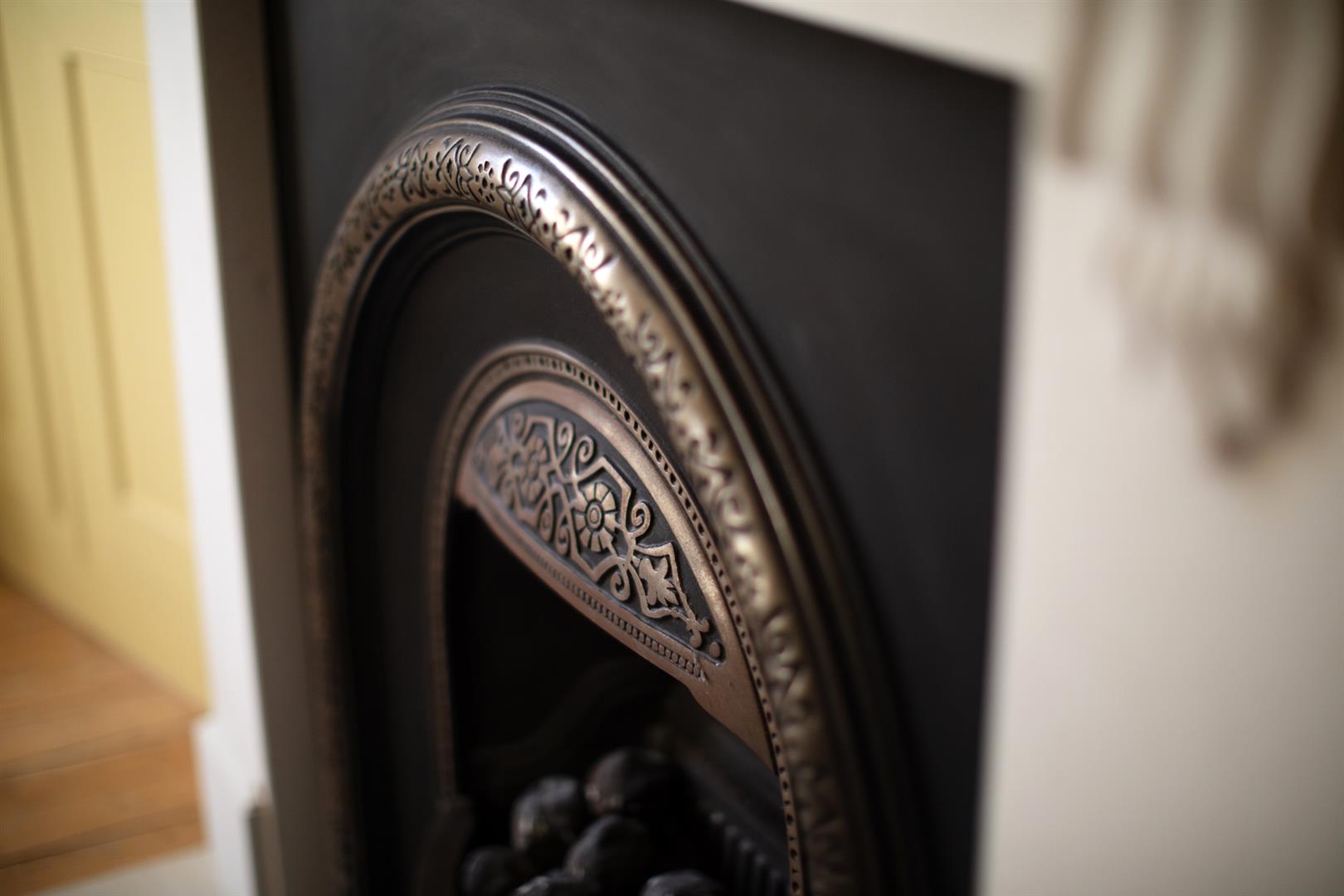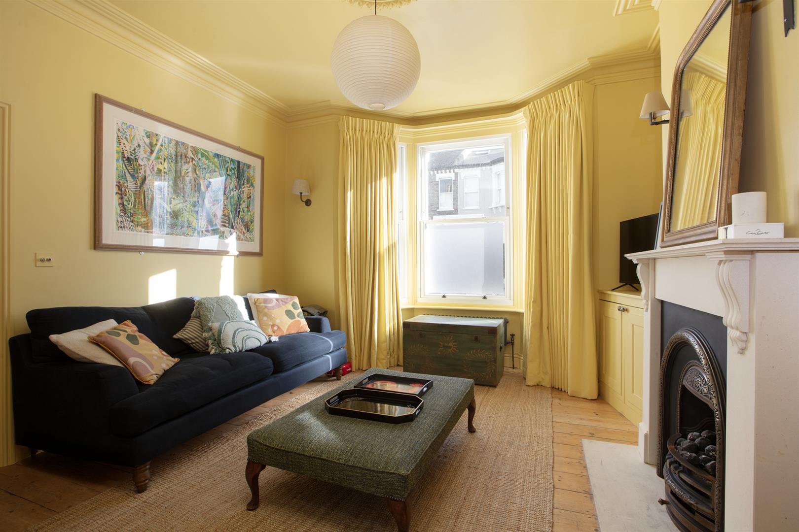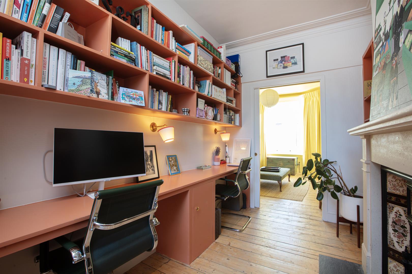 A super smart and handsome exterior creates the perfect first impression. The inner hall has lovely high ceilings, earthy wall tones and a school house radiator. The front-facing reception positively sparkles in a most enlivening soft yellow shade and soaks in southerly light throughout the day. The skirting, ceiling, cornicing and ceiling rose have been colour-drenched for a beautiful uniform look. A period-style gas fire with mantel completes the space nicely.