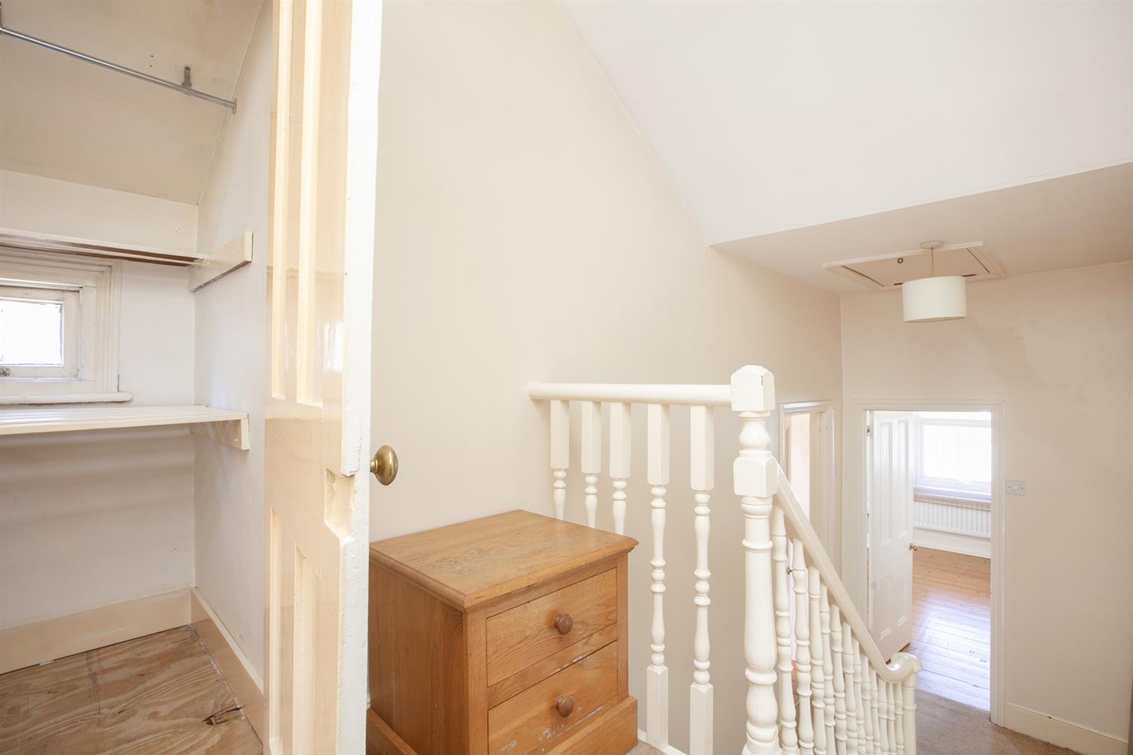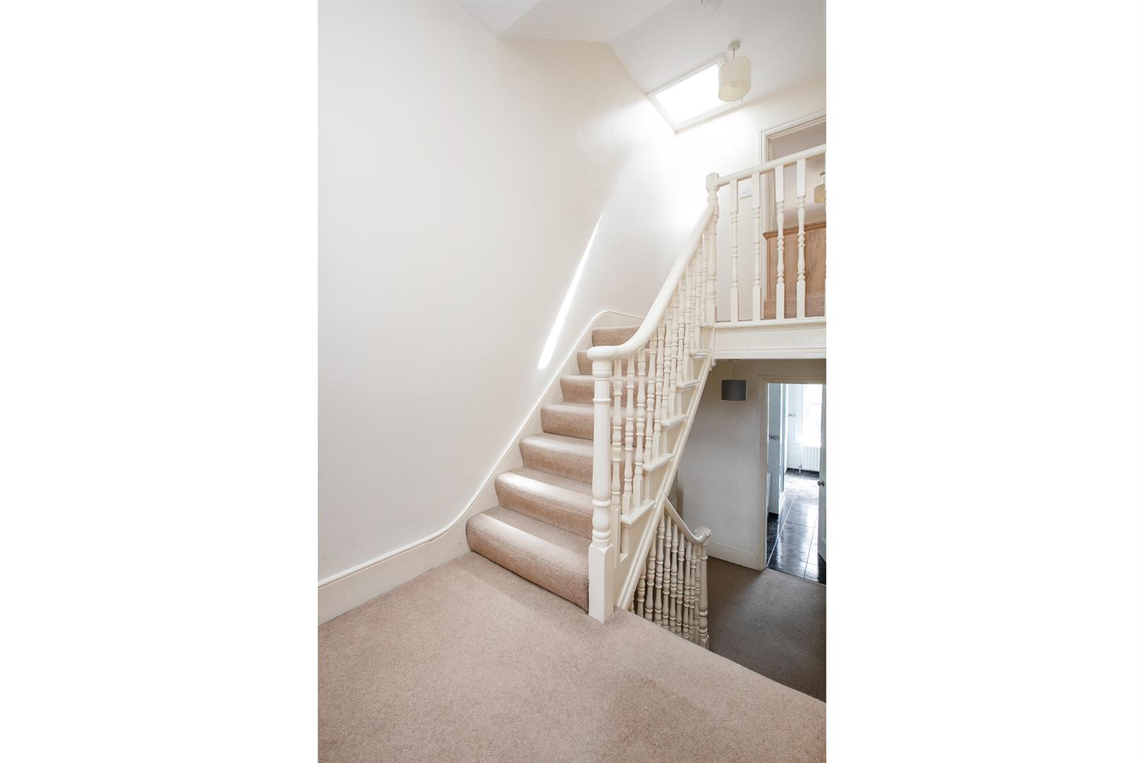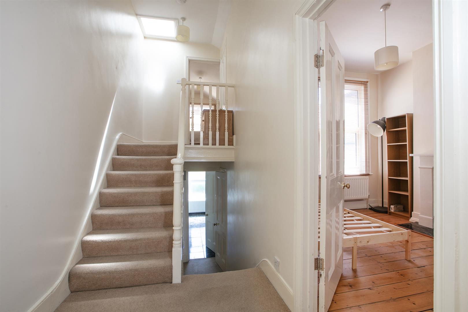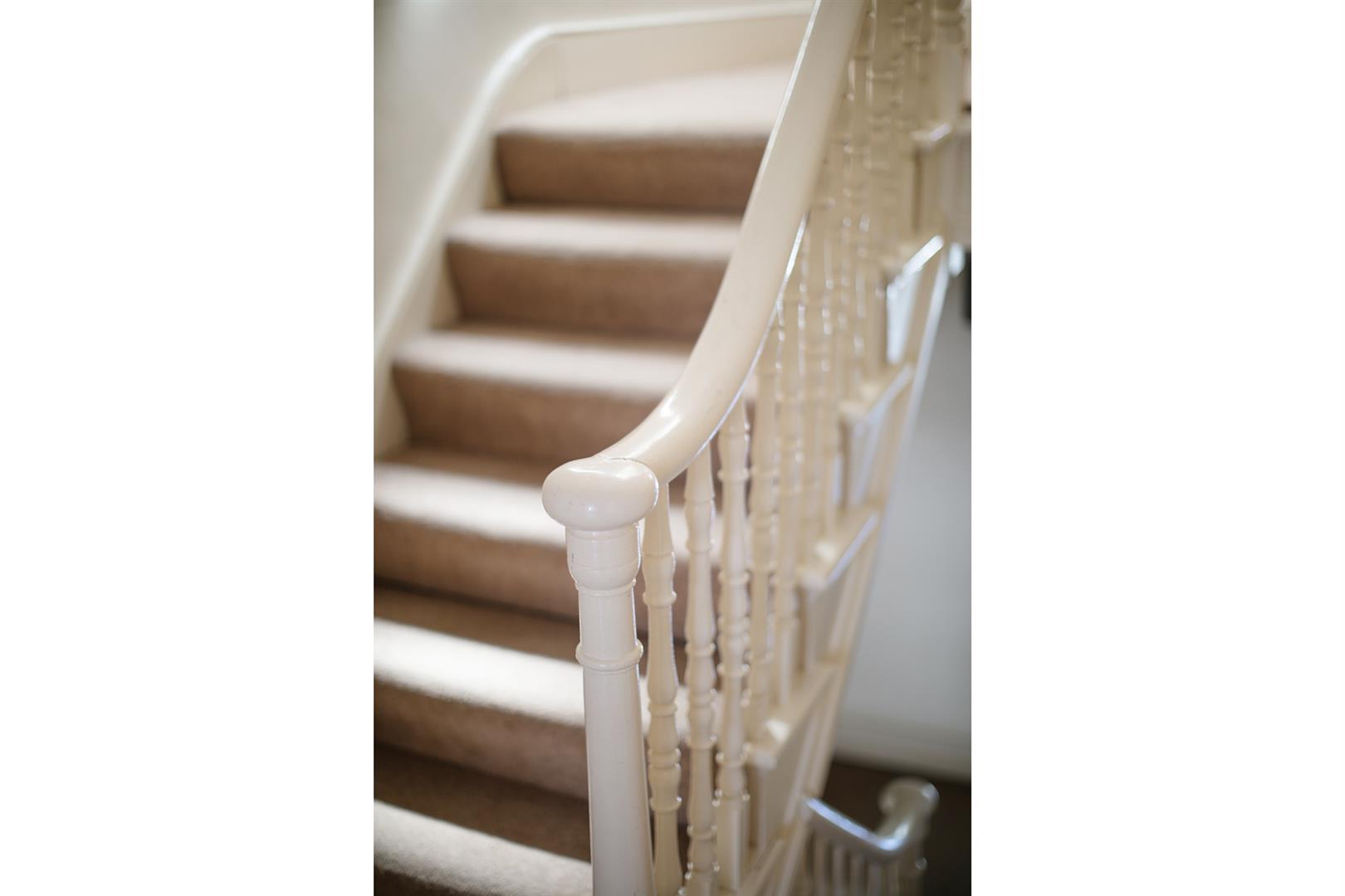 The first return hosts a sizeable family loo with extra deep bath, walk-in shower, twin wash hand basin and loo. A handy additional wc completes this level. A large master bedroom fronts the street with two large windows and a feature fireplace flanked on either side by low level storage units. Bedroom two, another fine double, has a feature fireplace and a peaceful rear aspect. The second return enjoys a lovely third double bedroom with the loftiest of the garden views. An airing cupboard next door could supply another wc should one wish.