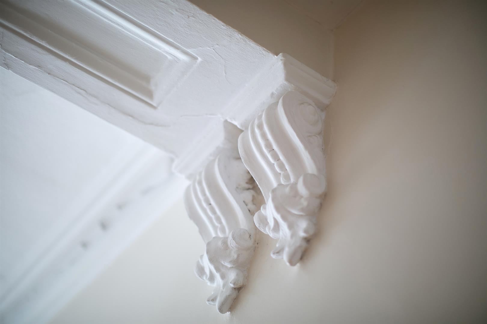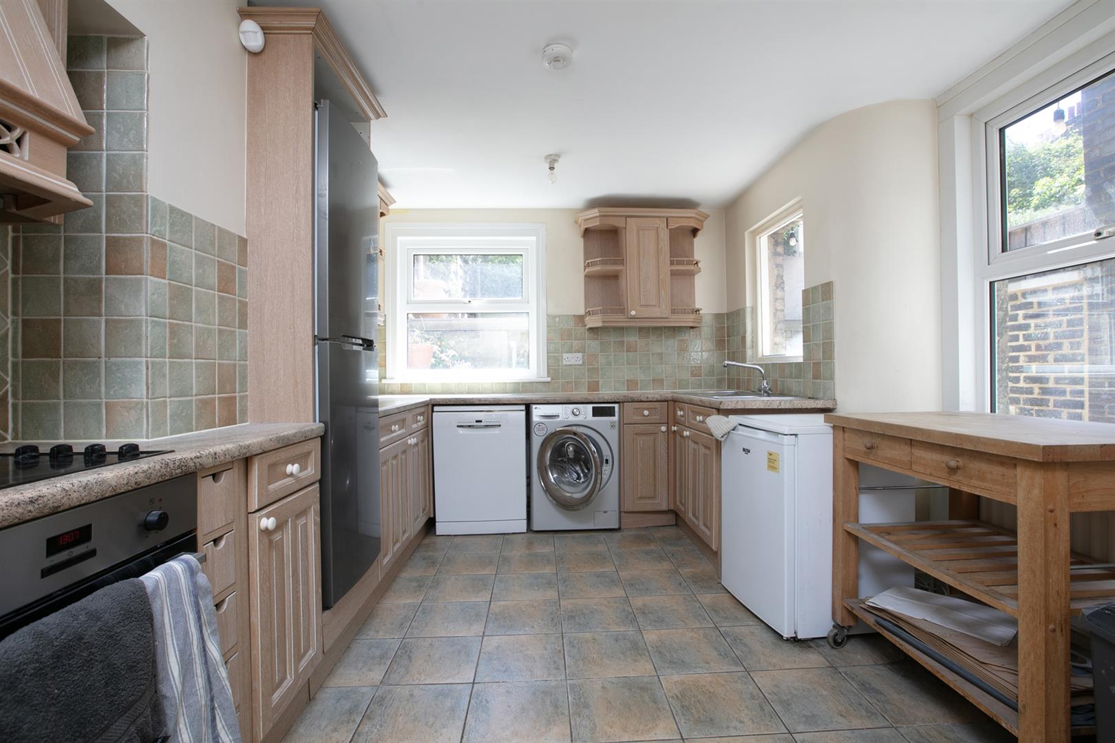 The inner hall has high ceilings, rustic original original floorboards, corbels, cornicing and horizontal wooden wall panelling. The double reception boasts original decorative ceiling roses, matching feature fireplaces with marble mantels and original low level storage units. There's cellar access under the stairs on the lower hall next to your kitchen/diner. This has counters on three sides and a side access point to your split level decked rear garden.